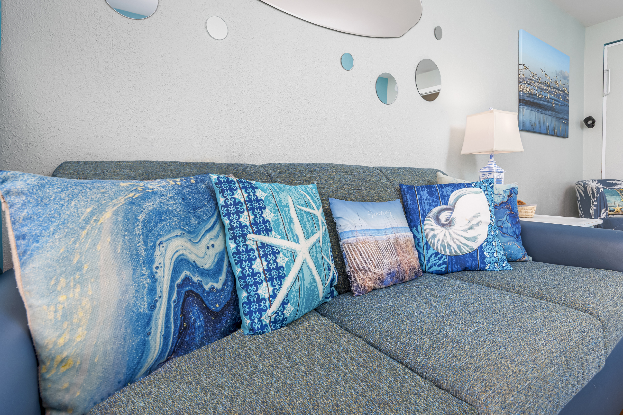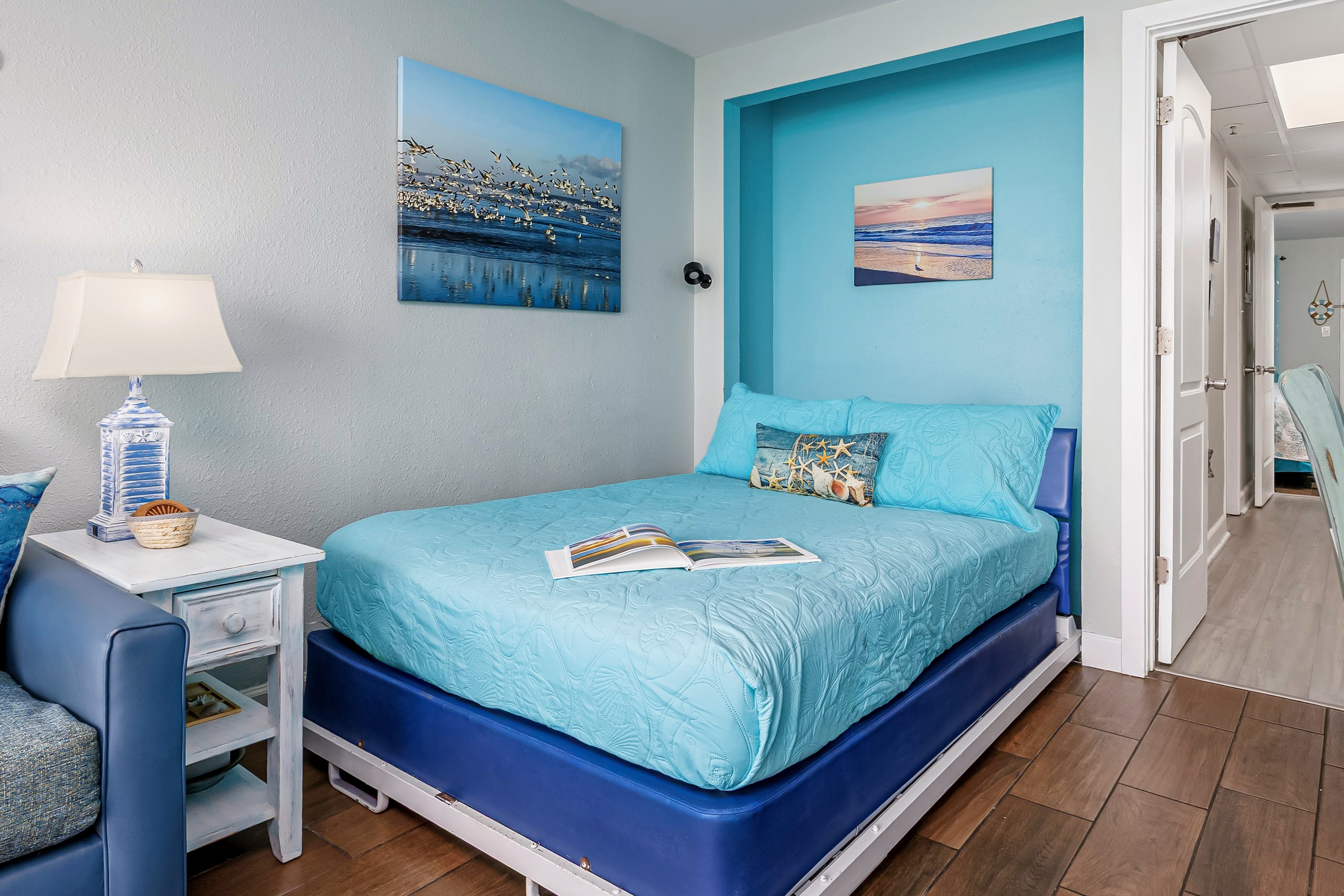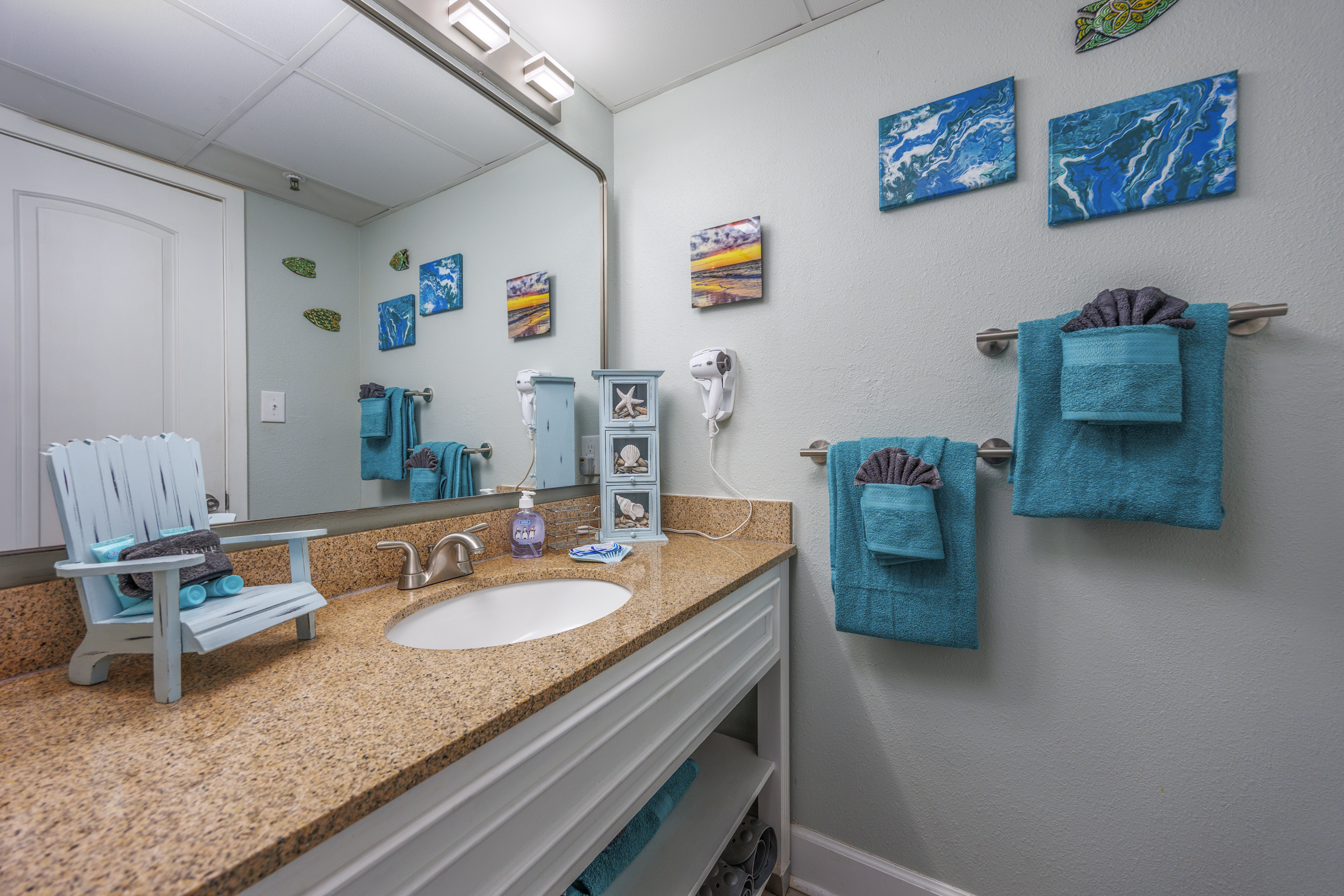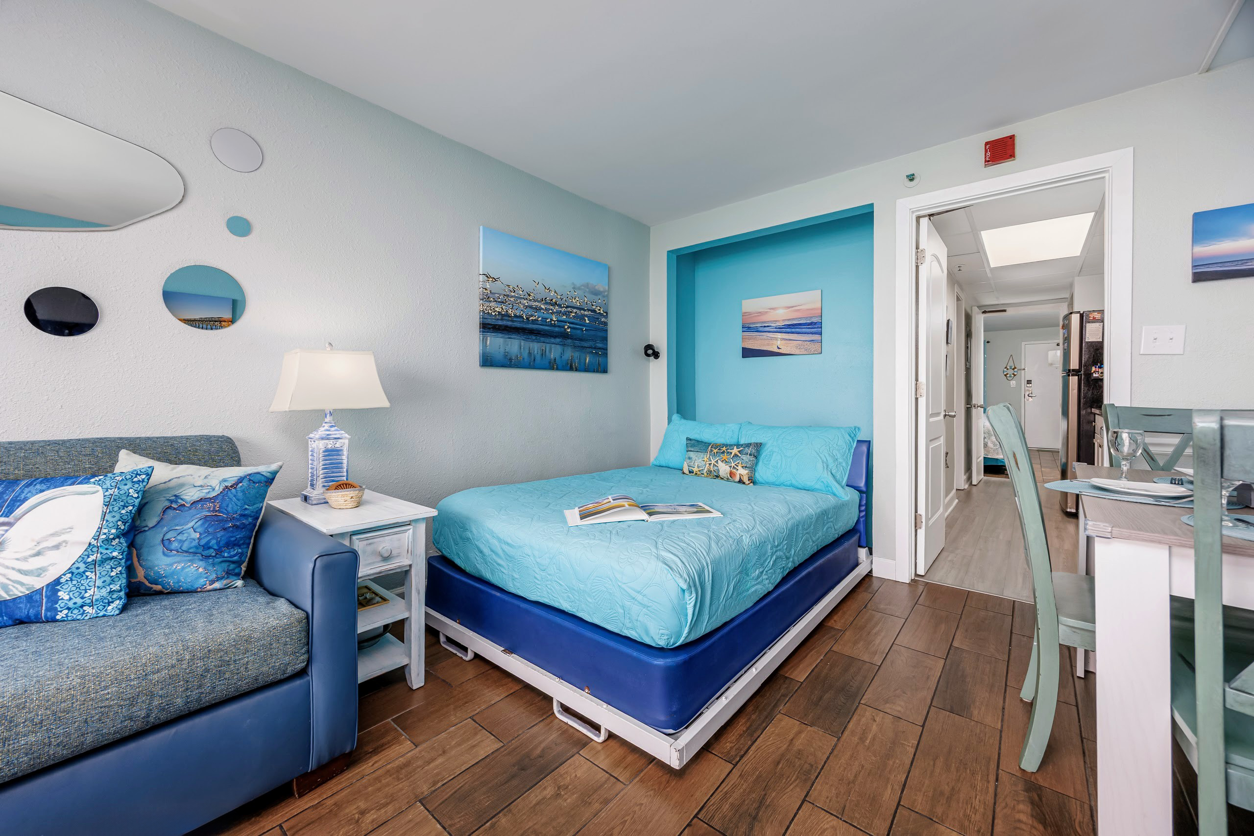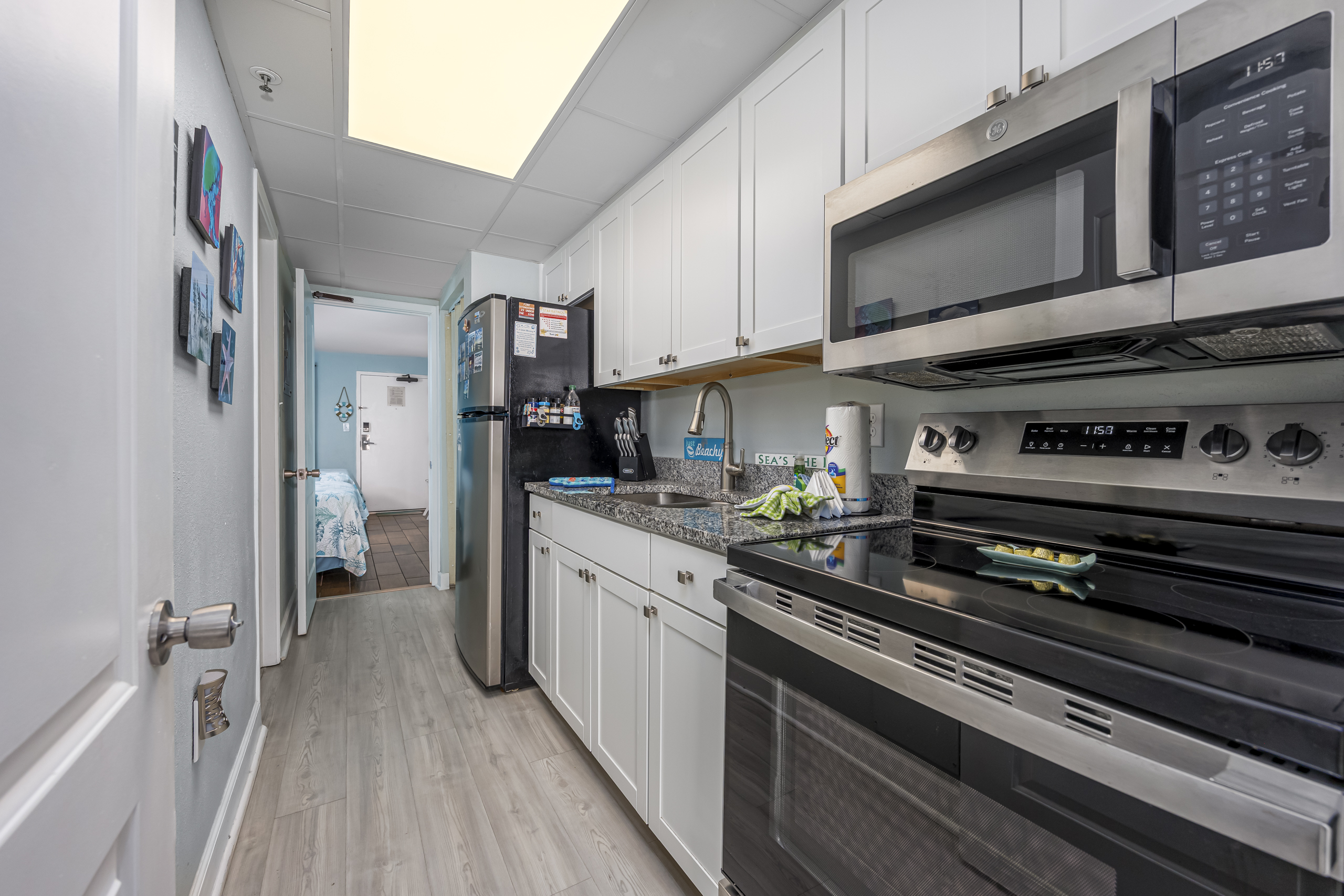 Welcome to Harmony’s Ocean Haven, your beach getaway! From the moment you step inside, you're greeted by breathtaking ocean views that set the tone for a relaxing stay. The condo is decorated in soothing coastal blues and teals that bring the calm of the sea indoors. All the artwork in the unit is our very own original photography — if you fall in love with any of the pieces, let us know… you’ll seriously make our day! LIVING ROOM The bright and welcoming living room offers floor-to-ceiling ocean views and a front-row seat to the ever-changing seascape. You'll find a full-size Murphy bed, an elegant dining area, and a comfortable couch and chair to sink into after a day of sun and surf. Whether you're enjoying a movie on the 55” smart TV or debating whether to sneak in one more beach day, this space makes it easy to relax and unwind. KITCHEN The fully stocked kitchen has everything you need to prepare your meals, whether you're cooking a fresh seafood dinner or just mastering the art of vacation pancakes. With the ocean just outside the window, even doing the dishes might feel a little more enjoyable. You’ll find a refrigerator with icemaker, stove, microwave, drip/Keurig combo coffee maker, toaster, and plenty of pots, pans, cooking utensils, plates, cups, and glasses. We also provide a starter supply of paper towels, dish soap, dish towels, and trash bags, and you’ll often find basic cooking supplies that our kind guests leave behind for others. BEDROOM The private bedroom is the perfect place to rest after a day of sun and sand, with two comfortable queen beds, a 55” smart TV with cable, dresser, and closet. We provide a dehumidifier to keep things cool and comfortable through the night. BATHROOM The updated bathroom includes a bathtub/shower combination with a dual handheld massage shower and a separate vanity area to make getting ready in the mornings a little easier. We supply a hairdryer, a starter set of toilet paper and toiletries, and two sets of towels per guest. BALCONY Step out onto your private sixth-floor balcony — a perfect place to sip your morning coffee, enjoy a quiet dinner, watch dolphins and surfers, or simply take in the ocean breeze. It’s a favorite spot for unwinding… or even imagining your new life as a full-time beach bum. The balcony is furnished with a pair of comfortable chairs and small tables, along with a drying rack for beach towels and swimsuits. BEACH GEAR You’ll find several beach essentials in the bedroom closet, including boogie boards, a cooler, a couple of beach chairs, beach toys, and an umbrella. There is also a selection of books, toys, and games in the living room cabinet for those occasional rainy days. Many of our guests prefer to bring their own pool/beach towels, but if you prefer to pack light, pool/beach towels are available to rent for $10 per towel for the duration of your stay. Just let us know and we will have them ready for you upon your arrival. RESORT AMENITIES Plentiful resort amenities include direct beach access, an oceanfront lawn with lounge chairs and games, indoor and outdoor heated pools, a heated lazy river, and three hot tubs. Don’t miss the recently renovated rooftop pool with beautiful sunset city views. The poolside Surf Shack offers seasonal refreshments and snacks, so you can grab a bite without leaving your lounge chair. Additional conveniences include soda and snack machines, a vending area, a fitness room with oceanfront views, a laundry facility, and free onsite parking just steps from the condo. The resort also provides onsite security and security cameras throughout the common areas. THE HARMONY’S OCEAN HAVEN DIFFERENCE This is my home too during the winter, and I want it to be as comfortable and welcoming for you as it is for me. Every detail has been thoughtfully considered to help you relax, unwind, and enjoy your time at the beach — I’ve done my best to think of just about every necessity that could possibly fit in the condo (and a few that probably shouldn’t! The condo is professionally managed, and as the owner, I stay closely involved to ensure everything is taken care of. Professional cleaning and restocking are completed after each stay, along with frequent quality control inspections. Monthly preventive pest control and annual bed bug treatments are provided by Beach Pest Service. PTAC units and smoke detectors are inspected and serviced annually, along with routine deep cleaning and preventive maintenance. I also make ongoing updates and improvements throughout the year to ensure the space stays fresh, comfortable, and guest-ready. I’m committed to clear and responsive communication throughout your stay. I look forward to welcoming you at Harmony’s Ocean Haven!