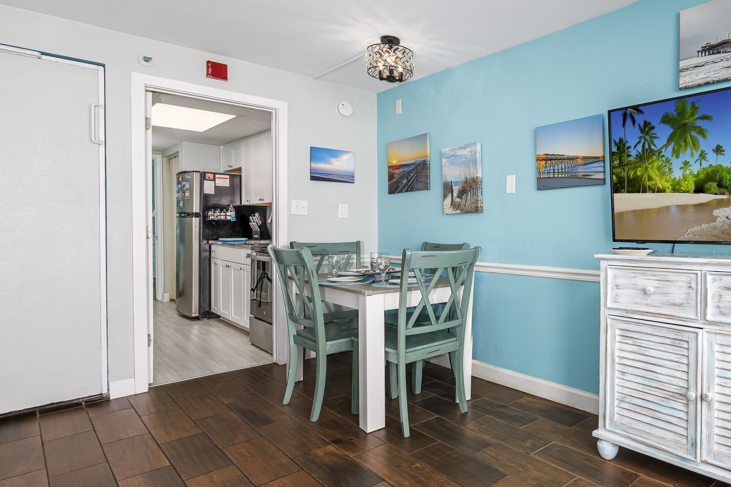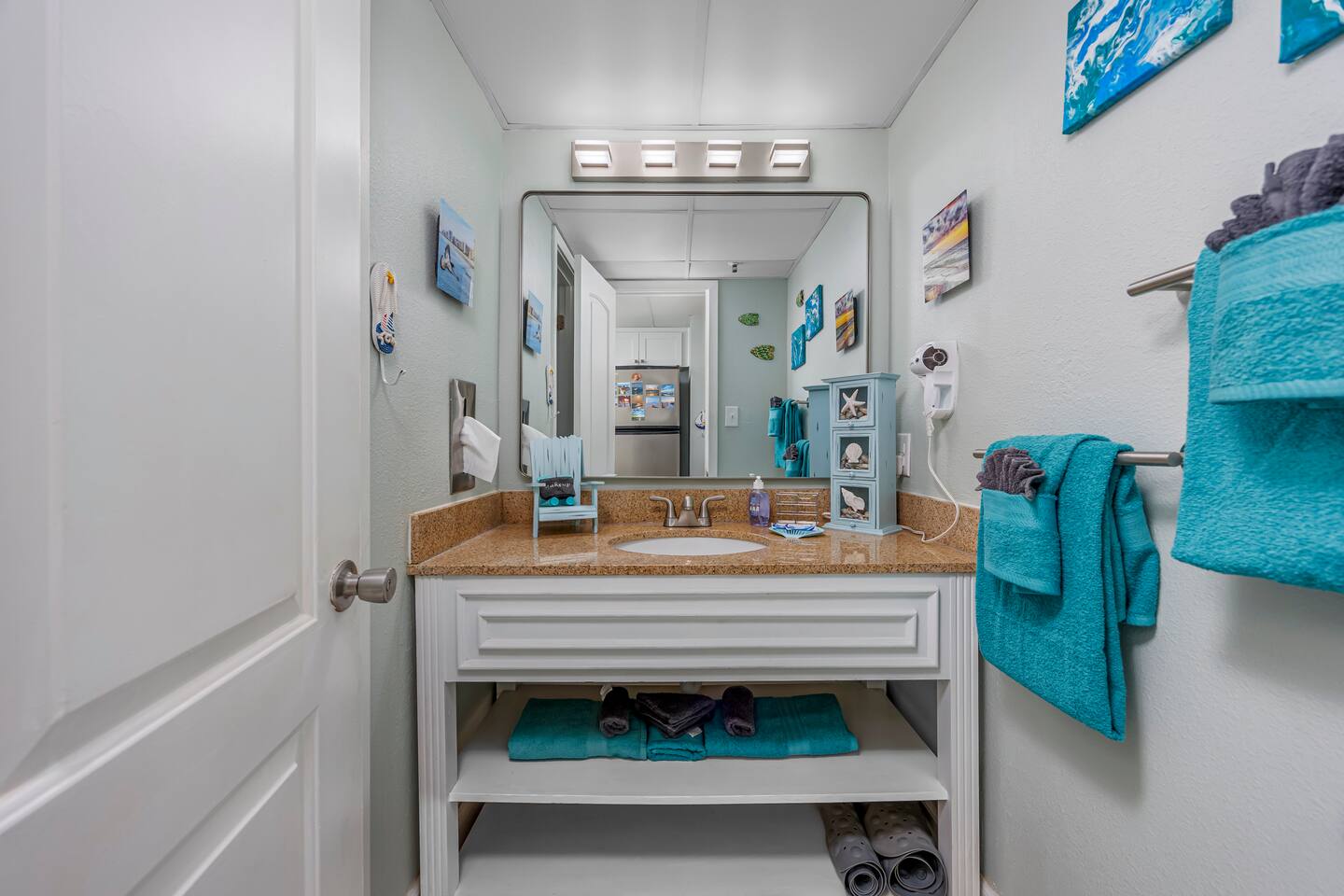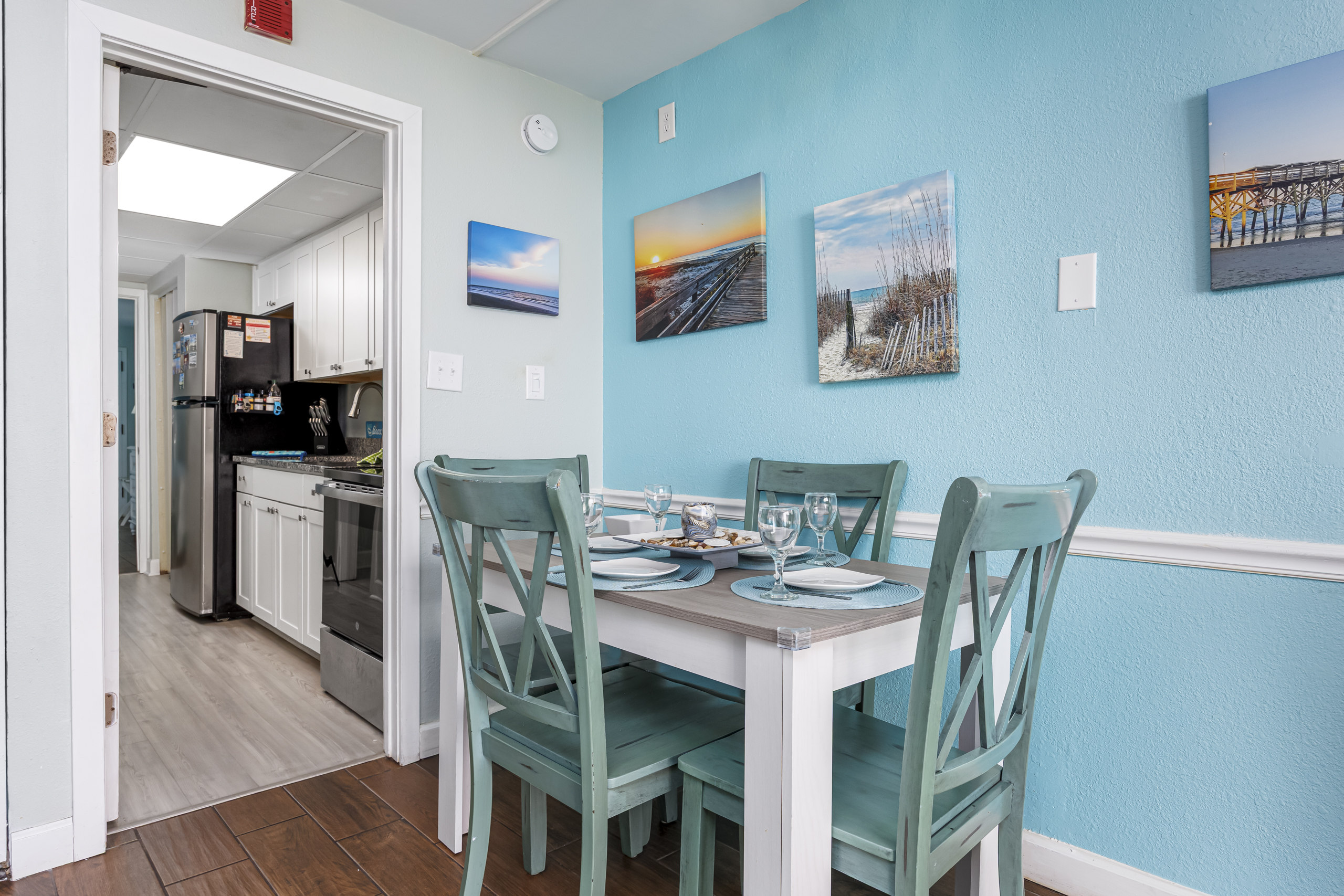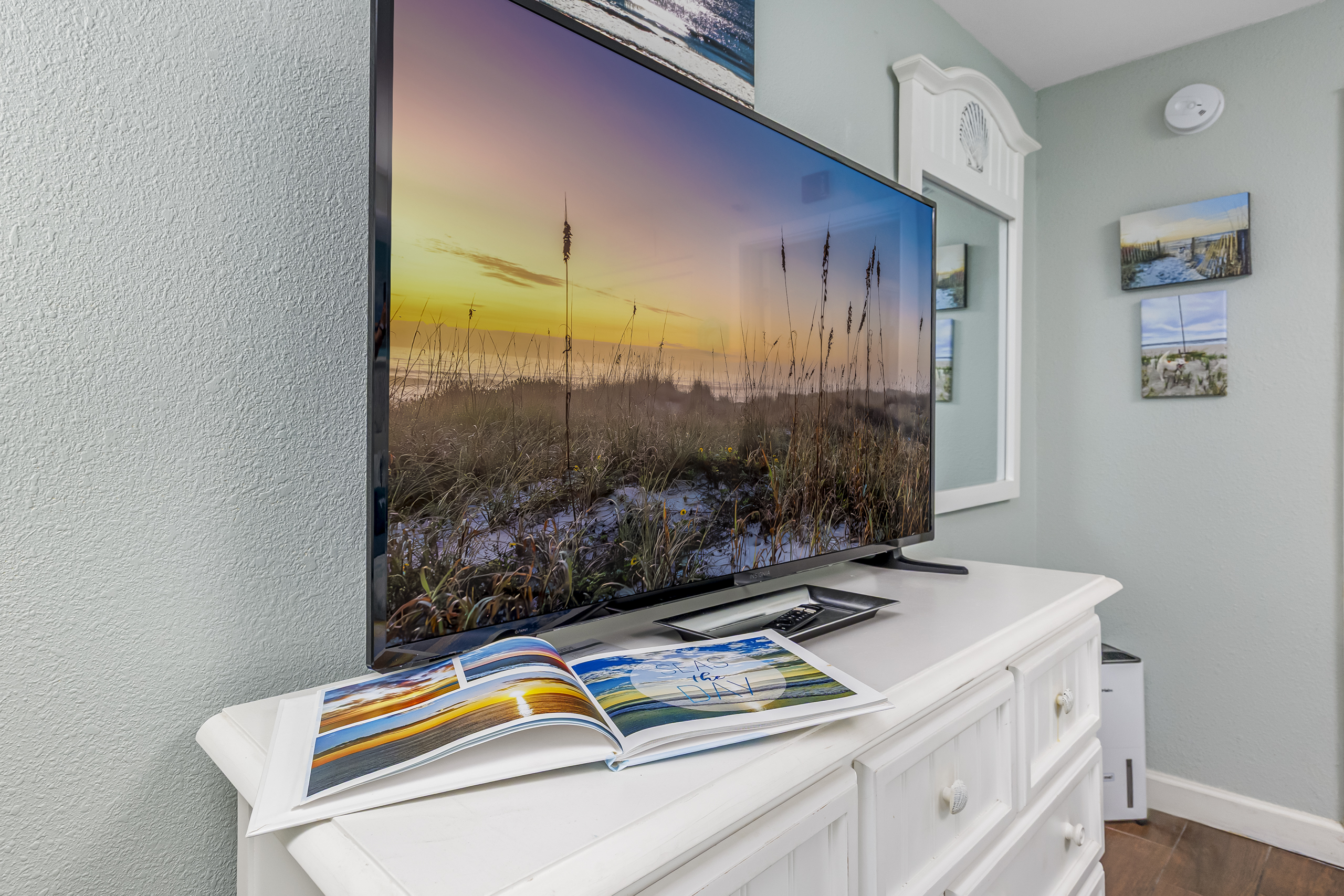 Welcome to Harmony’s Ocean Haven, your beach getaway! From the moment you step inside, you're greeted by breathtaking ocean views that set the tone for a relaxing stay. The condo is decorated in soothing coastal blues and teals that bring the calm of the sea indoors. All the artwork in the unit is our very own original photography — if you fall in love with any of the pieces, let us know… you’ll seriously make our day! LIVING ROOM The bright and welcoming living room offers floor-to-ceiling ocean views and a front-row seat to the ever-changing seascape. You'll find a full-size Murphy bed, an elegant dining area, and a comfortable couch and chair to sink into after a day of sun and surf. Whether you're enjoying a movie on the 55” smart TV or debating whether to sneak in one more beach day, this space makes it easy to relax and unwind. KITCHEN The fully stocked kitchen has everything you need to prepare your meals, whether you're cooking a fresh seafood dinner or just mastering the art of vacation pancakes. With the ocean just outside the window, even doing the dishes might feel a little more enjoyable. You’ll find a refrigerator with icemaker, stove, microwave, drip/Keurig combo coffee maker, toaster, and plenty of pots, pans, cooking utensils, plates, cups, and glasses. We also provide a starter supply of paper towels, dish soap, dish towels, and trash bags, and you’ll often find basic cooking supplies that our kind guests leave behind for others. BEDROOM The private bedroom is the perfect place to rest after a day of sun and sand, with two comfortable queen beds, a 55” smart TV with cable, dresser, and closet. We provide a dehumidifier to keep things cool and comfortable through the night. BATHROOM The updated bathroom includes a bathtub/shower combination with a dual handheld massage shower and a separate vanity area to make getting ready in the mornings a little easier. We supply a hairdryer, a starter set of toilet paper and toiletries, and two sets of towels per guest. BALCONY Step out onto your private sixth-floor balcony — a perfect place to sip your morning coffee, enjoy a quiet dinner, watch dolphins and surfers, or simply take in the ocean breeze. It’s a favorite spot for unwinding… or even imagining your new life as a full-time beach bum. The balcony is furnished with a pair of comfortable chairs and small tables, along with a drying rack for beach towels and swimsuits. BEACH GEAR You’ll find several beach essentials in the bedroom closet, including boogie boards, a cooler, a couple of beach chairs, beach toys, and an umbrella. There is also a selection of books, toys, and games in the living room cabinet for those occasional rainy days. Many of our guests prefer to bring their own pool/beach towels, but if you prefer to pack light, pool/beach towels are available to rent for $10 per towel for the duration of your stay. Just let us know and we will have them ready for you upon your arrival. RESORT AMENITIES Plentiful resort amenities include direct beach access, an oceanfront lawn with lounge chairs and games, indoor and outdoor heated pools, a heated lazy river, and three hot tubs. Don’t miss the recently renovated rooftop pool with beautiful sunset city views. The poolside Surf Shack offers seasonal refreshments and snacks, so you can grab a bite without leaving your lounge chair. Additional conveniences include soda and snack machines, a vending area, a fitness room with oceanfront views, a laundry facility, and free onsite parking just steps from the condo. The resort also provides onsite security and security cameras throughout the common areas. THE HARMONY’S OCEAN HAVEN DIFFERENCE This is my home too during the winter, and I want it to be as comfortable and welcoming for you as it is for me. Every detail has been thoughtfully considered to help you relax, unwind, and enjoy your time at the beach — I’ve done my best to think of just about every necessity that could possibly fit in the condo (and a few that probably shouldn’t! The condo is professionally managed, and as the owner, I stay closely involved to ensure everything is taken care of. Professional cleaning and restocking are completed after each stay, along with frequent quality control inspections. Monthly preventive pest control and annual bed bug treatments are provided by Beach Pest Service. PTAC units and smoke detectors are inspected and serviced annually, along with routine deep cleaning and preventive maintenance. I also make ongoing updates and improvements throughout the year to ensure the space stays fresh, comfortable, and guest-ready. I’m committed to clear and responsive communication throughout your stay. I look forward to welcoming you at Harmony’s Ocean Haven!