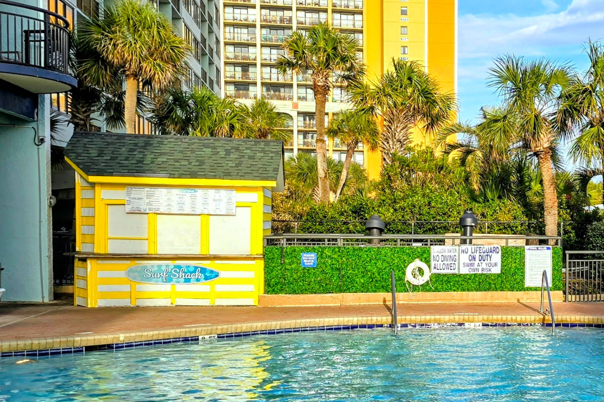 HOUSE RULES Please notify us promptly upon arrival of any cleaning or maintenance concerns and allow a reasonable time for resolution. We’ll make every effort to address the issue; however, refunds or rate adjustments cannot be provided. The primary renter is responsible for ensuring that all guests are included in the reservation and follow the house rules. We strongly recommend purchasing travel insurance if you have any uncertainty about your travel plans or are visiting during Atlantic hurricane season. Our cancellation policy is strictly enforced, and refunds cannot be provided for any reasons, including early departures or inclement weather. Guests are responsible for securing any desired travel protection for their stay. We ask that guests help keep the unit clean and in good condition during their stay. An additional cleaning/repair fee may be charged for excessive dirt, evidence of smoking or vaping, missing or damaged items, or other rule violations. Daily housekeeping is not provided, but mid-stay cleaning can be arranged for a separate fee. If using beach gear, please inspect it for damage before use, rinse off any sand, and allow it to dry before returning it to the closet. Luggage carts are not permitted inside the unit, as they may cause damage to furniture or walls. Please do not dispose of hair or other trash in the bathroom vanity sink. Our cast iron pipes are easily clogged… but not quite as easily unclogged. A trash container is provided in the bathroom for your convenience. Please dispose of trash promptly to help prevent pests, as our humid coastal environment can attract them. Large trash containers are located near the garage elevator on each floor. Trash should not be left in the hallways. Please keep the balcony door closed and the AC on at all times. Use of the dehumidifier is recommended to help minimize the risk of humidity damage and mildew. The host is not responsible for resort-related issues, including amenity closures, power outages, Wi-Fi speed, water shut-offs, repairs, noise, inclement weather, or the behavior of other guests, as these matters are beyond our control. In the event of resort-wide issues, please check for announcements posted in the elevators and feel free to notify us so we can follow up with the HOA on your behalf. The host is not liable for any accidents, injuries, illnesses, or loss of personal belongings that may occur in the unit or on the premises. By booking this stay, guests acknowledge and assume all risks associated with their visit. HOA AND RESORT RULES The following City, Resort, and HOA rules are strictly enforced. Violations may result in fines or cancellation of the reservation without refund. • Maximum occupancy is 6 guests, including children and infants. • Minimum age to book is 21. • Quiet hours begin at 11 PM. No parties or large gatherings. • Residents of Horry, Georgetown, and Marion counties are not permitted to book. • This is a non-smoking resort. Smoking, vaping, marijuana, and e-cigarettes are strictly prohibited in the unit, on the balcony, or in common areas. A $250 fine will be charged if smoking is suspected, and guests will be responsible for any additional cleaning or remediation costs. • Do not hang clothing, linens, or towels from balcony railings. Throwing anything from the balcony is strictly prohibited. • No fireworks, grills, barbecues, deep fryers, or any open flame cooking equipment. • Pets are not allowed. • Mandatory pest control is conducted on the third Tuesday of every month. Guests must provide access to the condo for service to be completed. • Pool Use: Guests acknowledge that the use of any pool or pool amenities is at their own risk. Guests are responsible for the safety and supervision of all individuals in their party and must comply with posted pool rules. The host is not liable for any damages, injuries, or losses resulting from pool and pool area use.