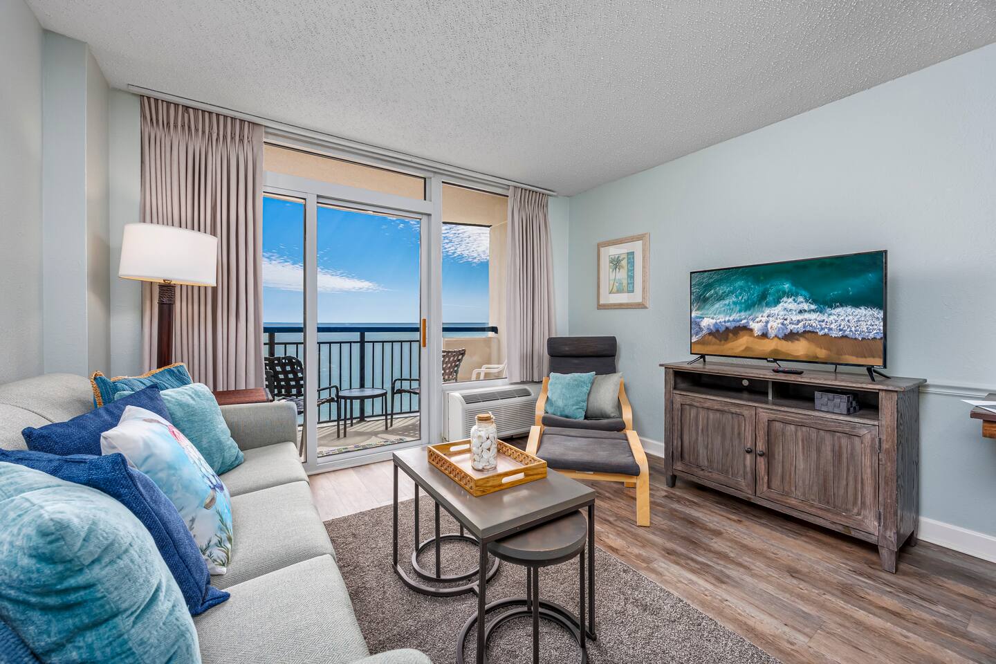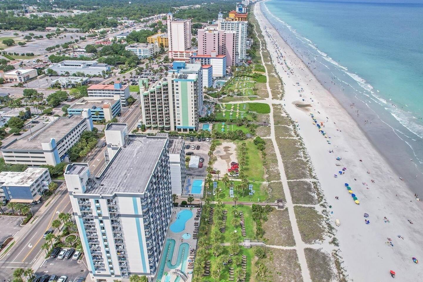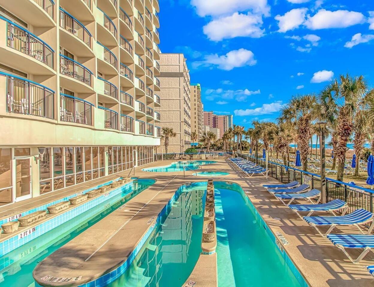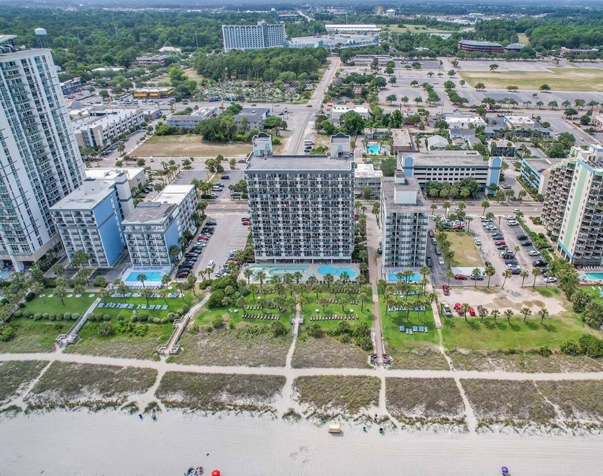 Welcome to our oceanfront condo with indoor and outdoor pools, lazy river and hot tubs! ! Enjoy your drinks on the private 10th floor balcony where the skyline offers both sunrise & sunset cloudscapes! You’ll be in the heart of Myrtle Beach, minutes from world-class golf courses, the Convention Center, Broadway at the Beach, & walking distance to the 21st Avenue restaurants just around the corner. With 2 queen beds plus a full sized murphy bed, there's room to sleep 6 in this great 1 bdrm condo!