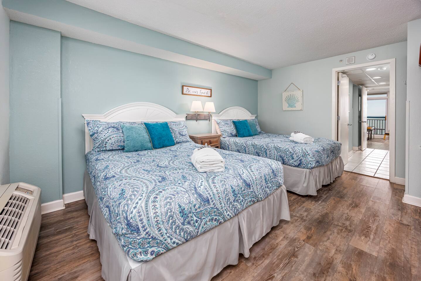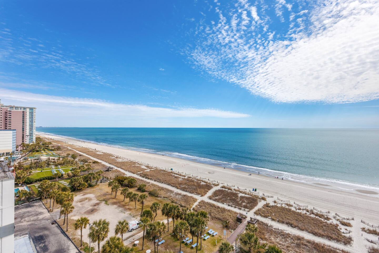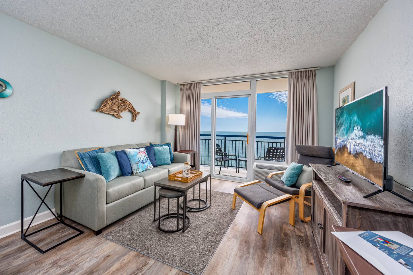 -Gorgeous Oceanfront Views from a Private 10th-floor Balcony -3 pools (HEATED indoor pool), 2 hot tubs, and a lazy river -Walking distance to restaurants, bars, the Boardwalk, Pier 14, and the notorious Sky Wheel -Full-sized kitchen stocked with the essentials -FREE high-speed wi-fi -FREE on-site parking and parking garage (2 spaces) The Space This condo features the living room on the ocean side of the building. If you sleep in the murphy bed, you can wake up to views of the ocean! Unlike some units, our condo features interior doors on both sides of the galley-style kitchen, which allow privacy in the bedroom and/or living room while maintaining access to the kitchen and bathroom for other guests. ⭐Highlights⭐ -Professionally cleaned between each guest -2 queen beds and 1 murphy bed -Flat screen cable TVs -Free high-speed wi-fi -Full-sized kitchen stocked with the essentials -Linens, starter pack of trash bags, paper towels, etc. are provided -Hair dryer, soaps, shampoo, and more. See the full list of amenities!