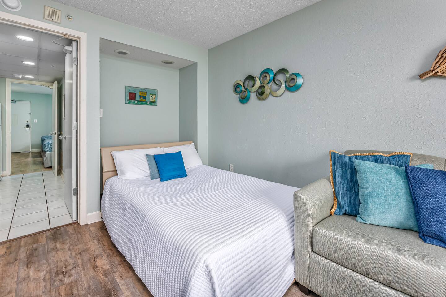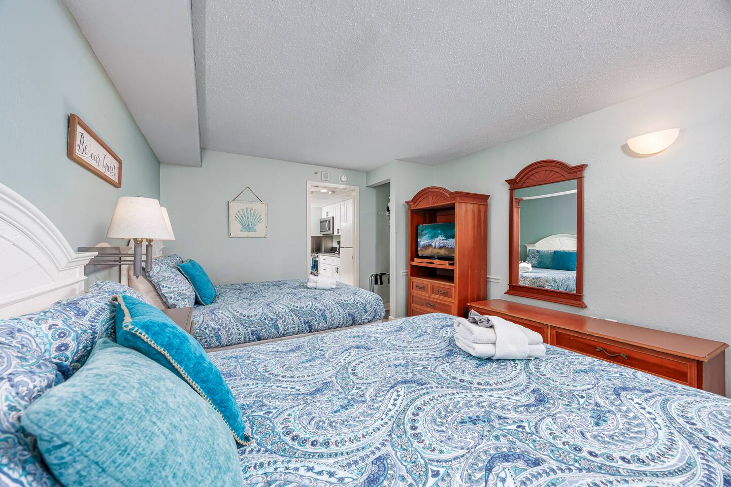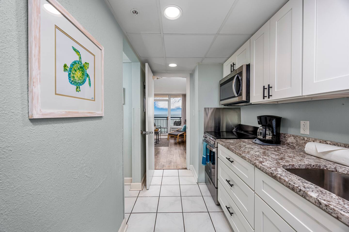 -Gorgeous Oceanfront Views from a Private 10th-floor Balcony -3 pools (HEATED indoor pool), 2 hot tubs, and a lazy river -Walking distance to restaurants, bars, the Boardwalk, Pier 14, and the notorious Sky Wheel -Full-sized kitchen stocked with the essentials -FREE high-speed wi-fi -FREE on-site parking and parking garage (2 spaces) The Space This condo features the living room on the ocean side of the building. If you sleep in the murphy bed, you can wake up to views of the ocean! Unlike some units, our condo features interior doors on both sides of the galley-style kitchen, which allow privacy in the bedroom and/or living room while maintaining access to the kitchen and bathroom for other guests. ⭐Highlights⭐ -Professionally cleaned between each guest -2 queen beds and 1 murphy bed -Flat screen cable TVs -Free high-speed wi-fi -Full-sized kitchen stocked with the essentials -Linens, starter pack of trash bags, paper towels, etc. are provided -Hair dryer, soaps, shampoo, and more. See the full list of amenities!