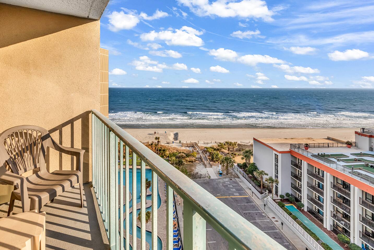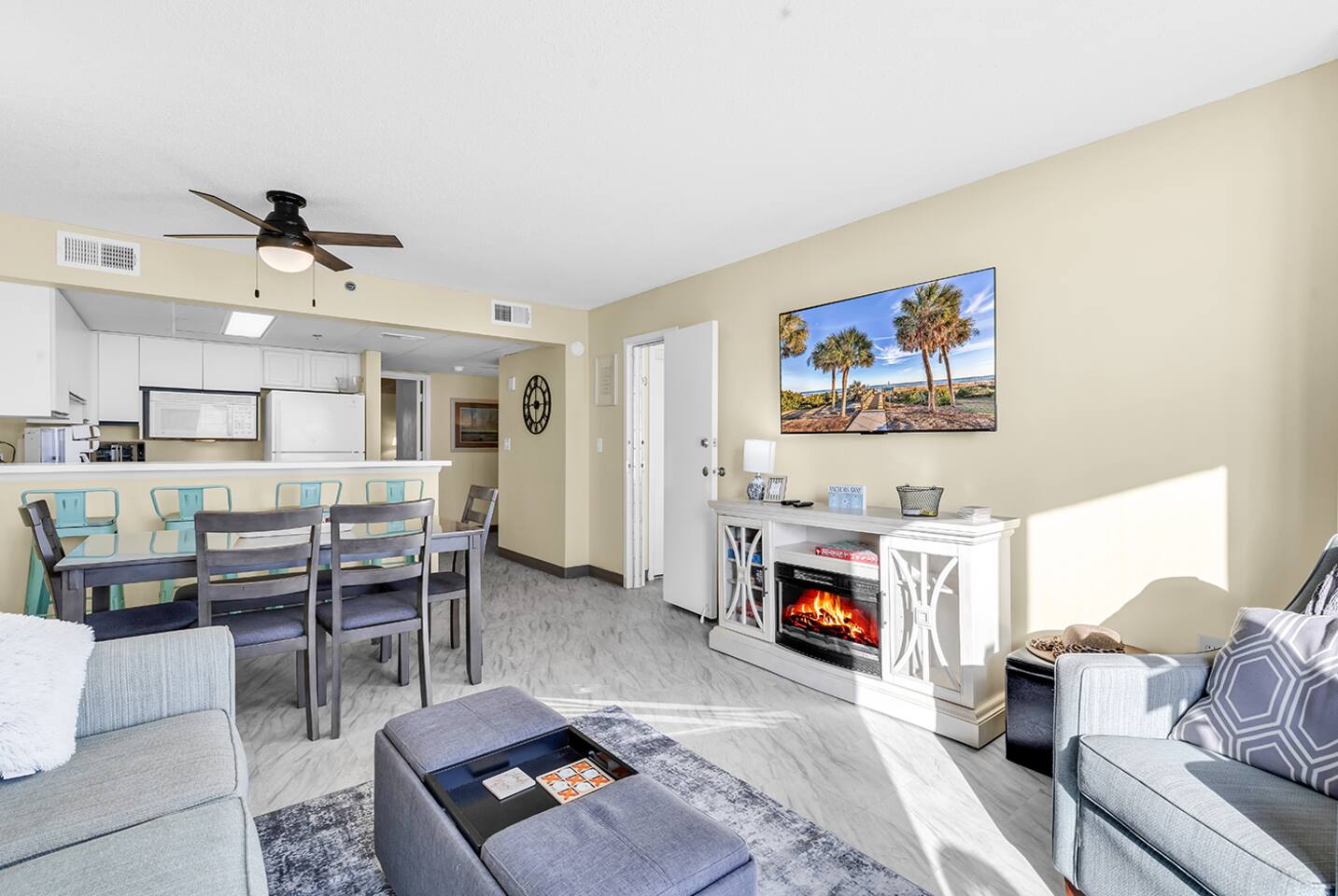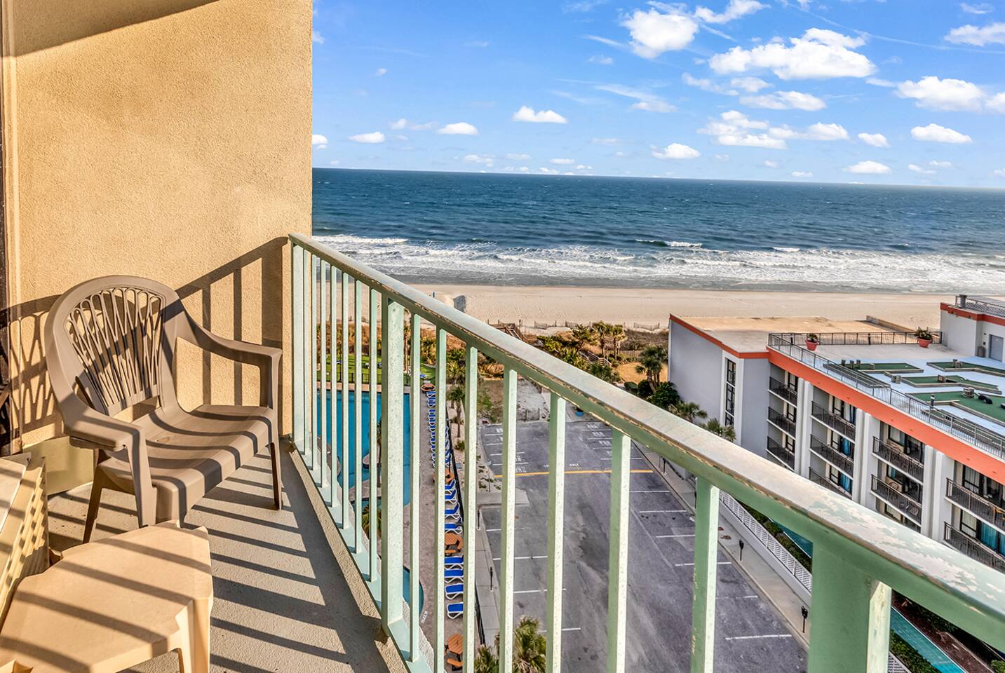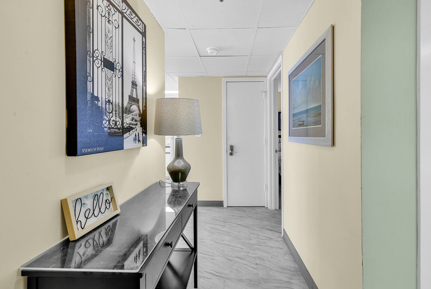 Description of entire space: Located on the 10th floor. Main unit- Living room: Couch, chair, TV, electric fireplace, access to balcony with ocean view, access to lockout unit Dining area: Table that will easily seat 6 Kitchen: Breakfast bar with stools, fridge, stove top (no regular oven), toaster oven, dishwasher, microwave, dual coffee machine (drip or pods) Bedroom 1: 2 queen beds, TV, dresser, closet Bathroom 1: Accessed from hallway or bedroom 1, has tub/shower combo, sink, counter, toilet W/D area: another bathroom sink and counter, stackable washer/dryer Secondary unit- Bedroom 2: king bed, TV, access to second balcony, small fridge, microwave, dresser, small table/chairs, closet, accessed from exterior door or LR in main unit. Bathroom 2: tub/shower combo, toilet, sink with counter space