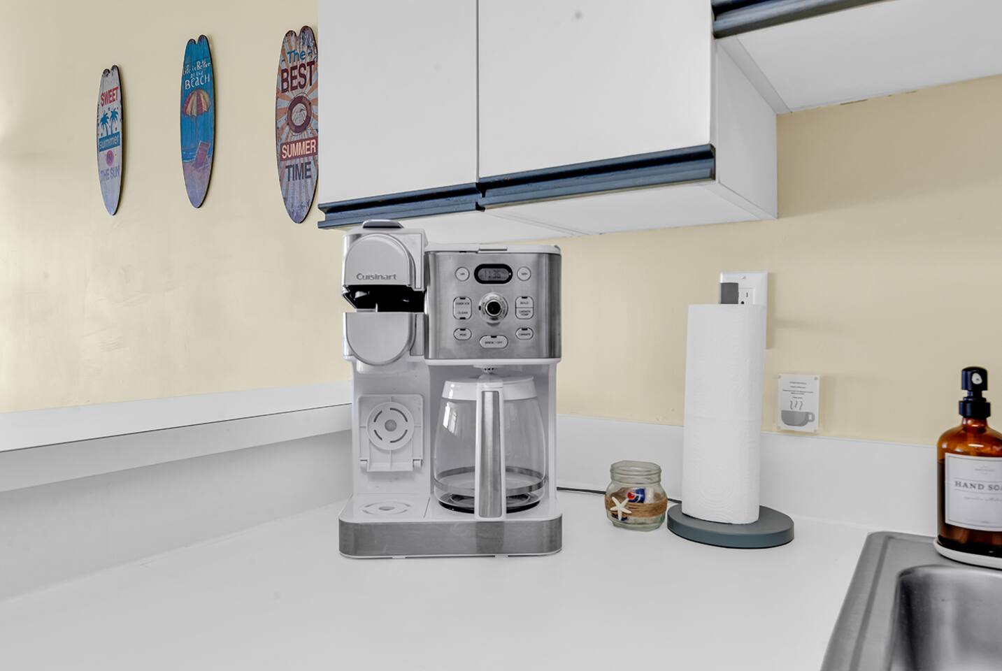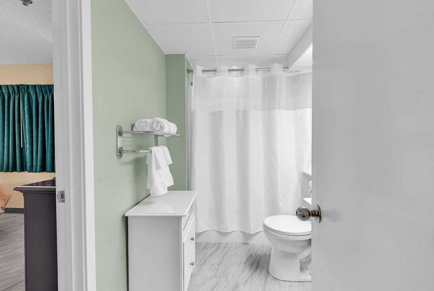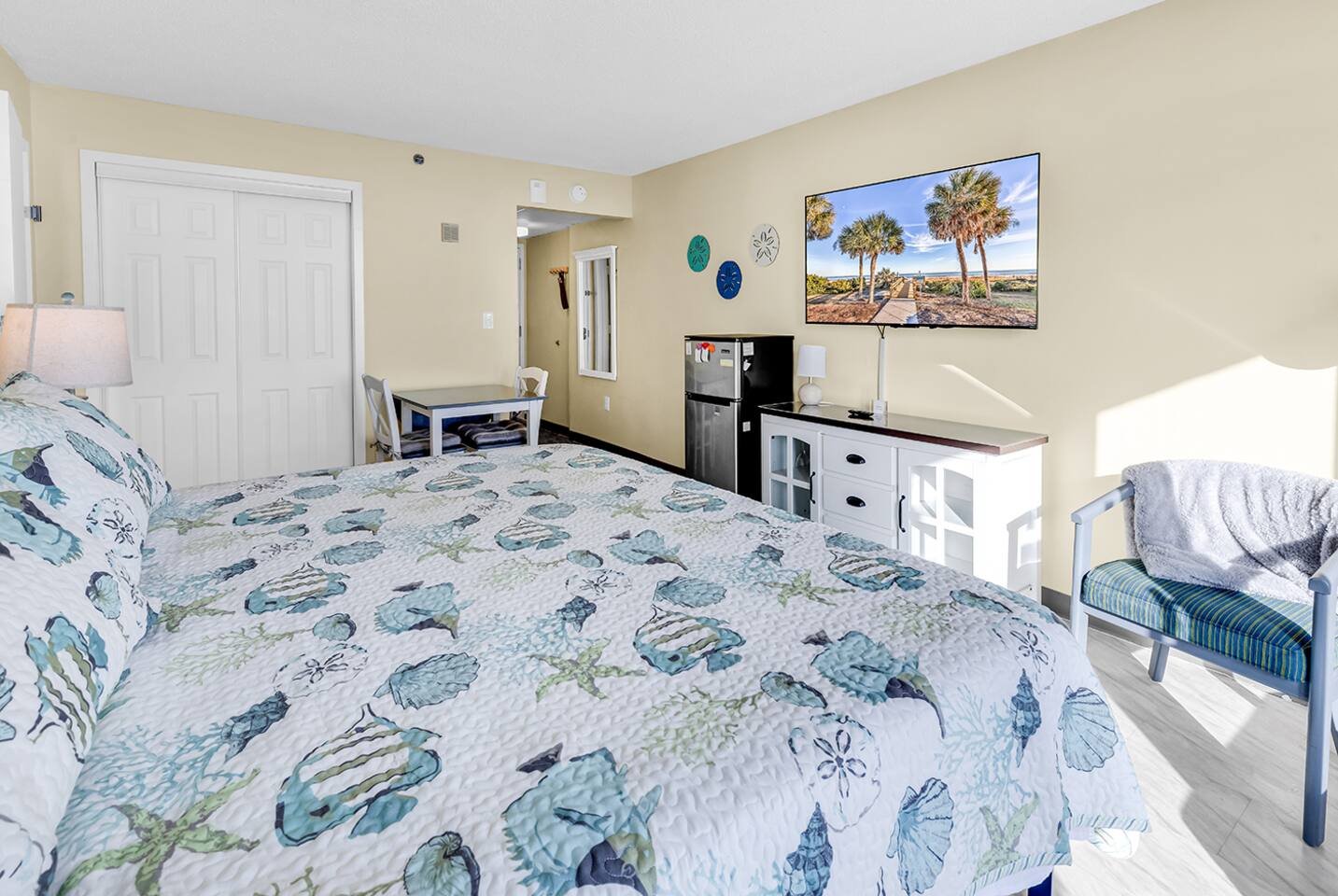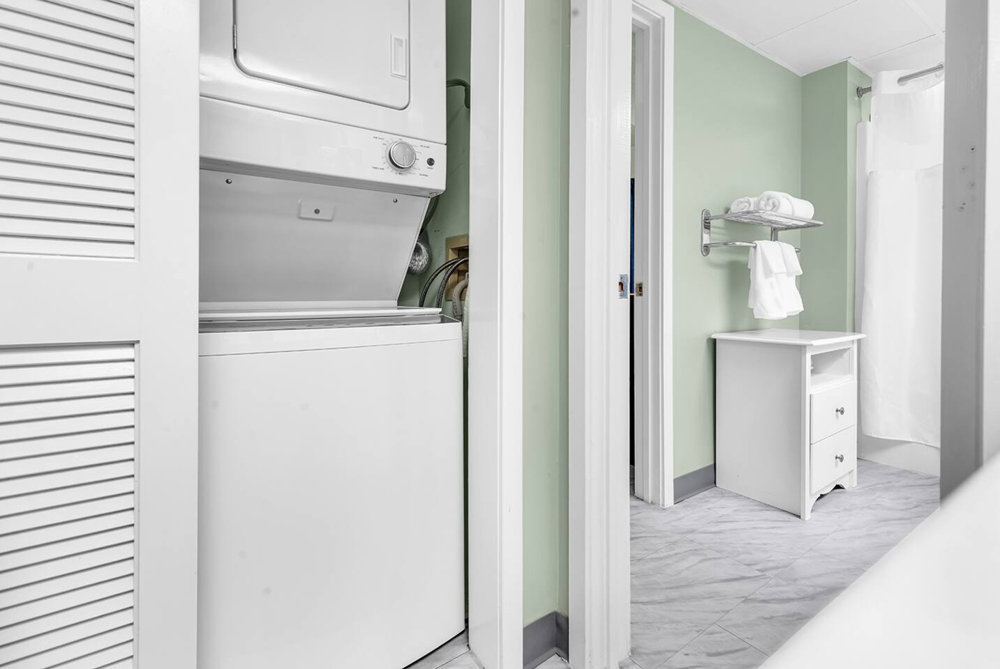 Description of entire space: Located on the 10th floor. Main unit- Living room: Couch, chair, TV, electric fireplace, access to balcony with ocean view, access to lockout unit Dining area: Table that will easily seat 6 Kitchen: Breakfast bar with stools, fridge, stove top (no regular oven), toaster oven, dishwasher, microwave, dual coffee machine (drip or pods) Bedroom 1: 2 queen beds, TV, dresser, closet Bathroom 1: Accessed from hallway or bedroom 1, has tub/shower combo, sink, counter, toilet W/D area: another bathroom sink and counter, stackable washer/dryer Secondary unit- Bedroom 2: king bed, TV, access to second balcony, small fridge, microwave, dresser, small table/chairs, closet, accessed from exterior door or LR in main unit. Bathroom 2: tub/shower combo, toilet, sink with counter space