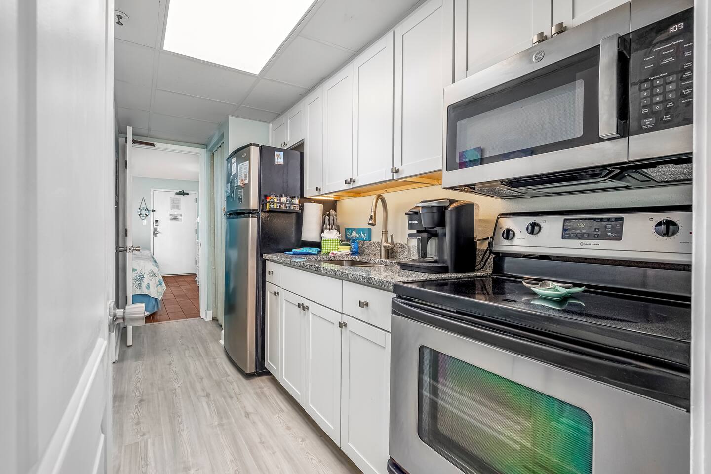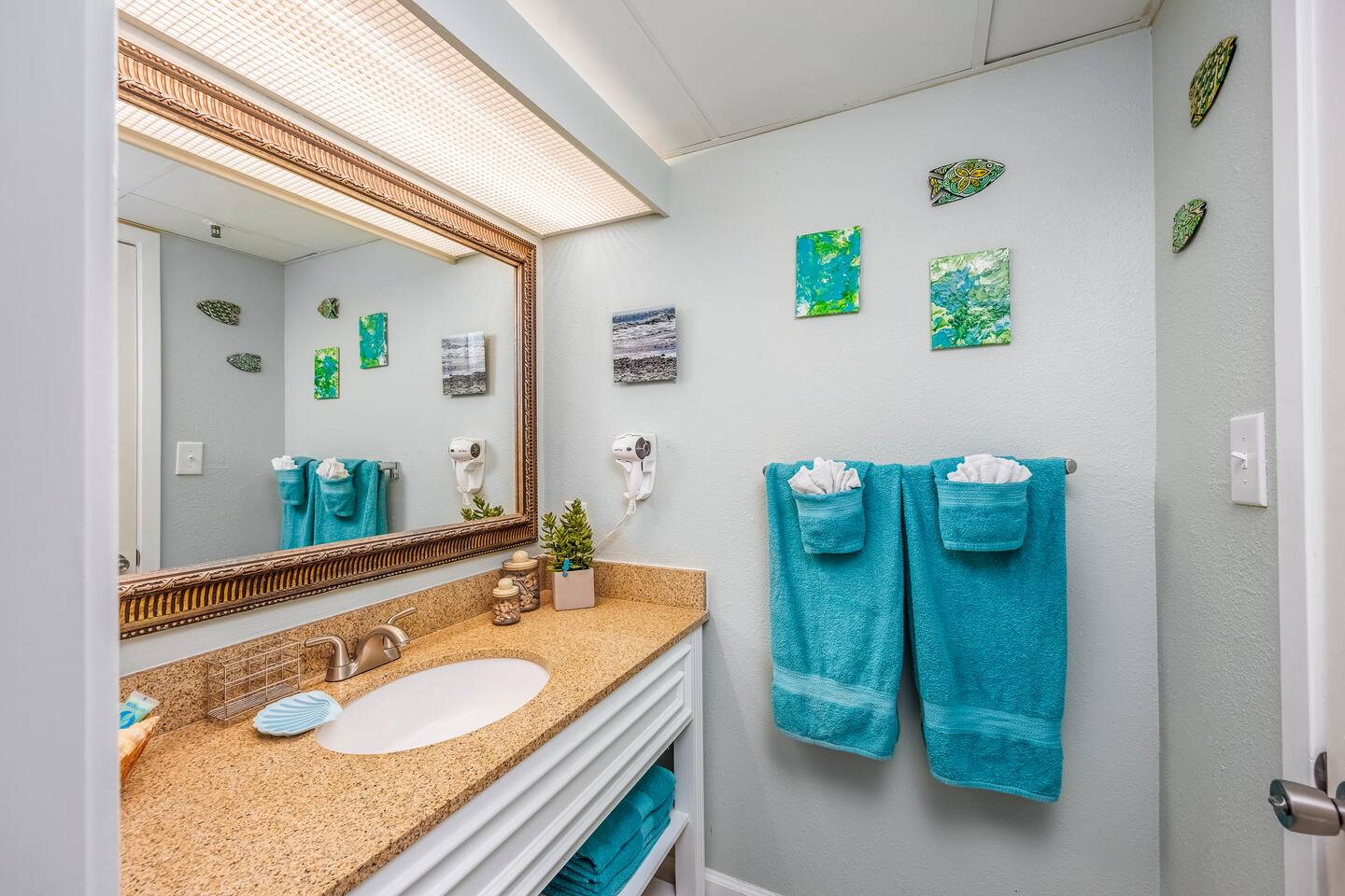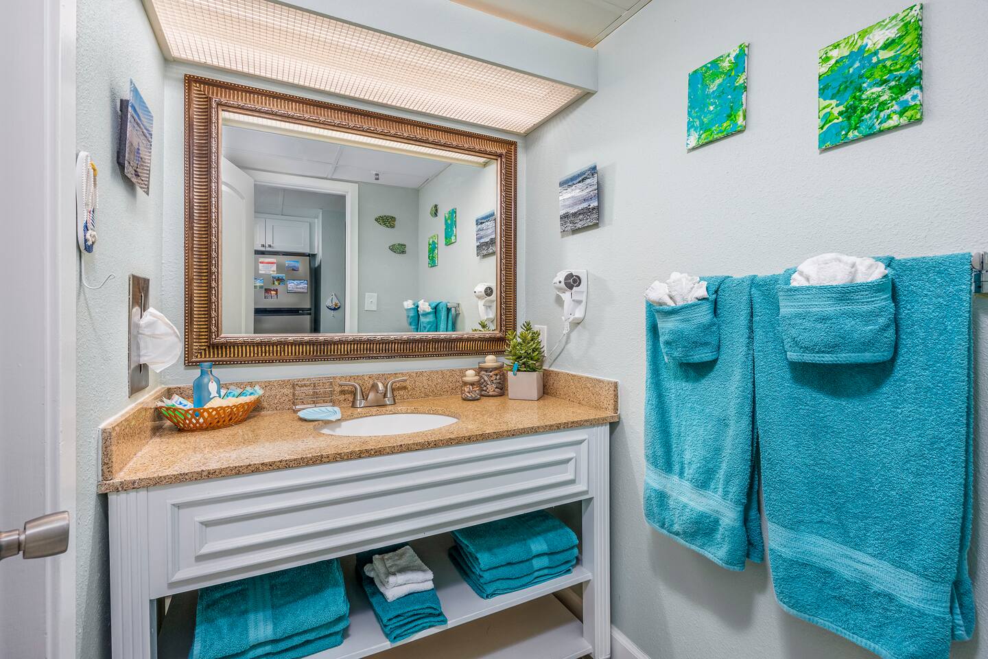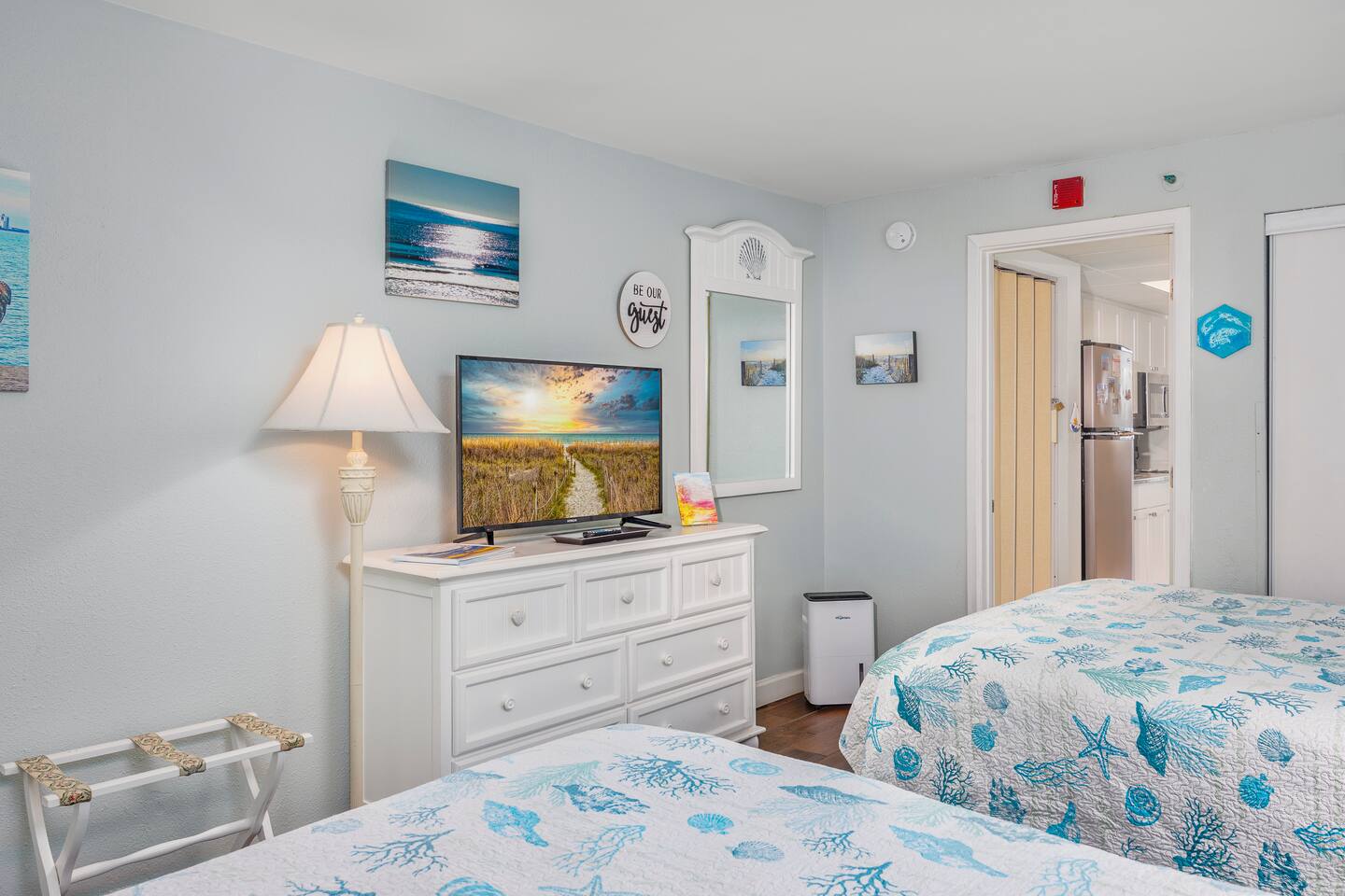 Welcome to Harmony’s Ocean Haven, your beach getaway! From the moment you step inside, you're greeted by breathtaking ocean views that immediately set the tone for a relaxing and refreshing stay. The condo is decorated in soothing coastal blues and teals, bringing the calm and beauty of the sea right indoors. The airy and cheerful living room offers a front-row seat to the ever-changing seascape. You'll find a convenient Murphy bed, an elegant dining area, and a comfortable couch and chair – perfect for sinking in after a day of sun and surf. Whether you're enjoying a movie on the 55” smart TV or debating whether to sneak in just one more beach day (spoiler: the answer is always yes!), this space invites you to unwind. Our fully stocked kitchen has everything you need to prepare your meals—whether you're cooking a gourmet seafood feast or just mastering the art of vacation pancakes. And with the ocean just outside the window, even doing the dishes might feel a little more enjoyable. The bedroom is the perfect place to rest after a day of sun and sand, with two comfortable queen beds, a 55” smart TV, and a dehumidifier to keep things cool and comfortable through the night. All the artwork in the condo is our very own original photography, if you love any pieces, let us know – you’ll seriously make our day! You will find a few beach essentials in the bedroom closet – boogie boards, a cooler, a couple of beach chairs, and an umbrella. There is a selection of books, toys, and games in the living room cabinet for those rainy days. The bathroom features an updated bathtub/shower combination with a dual handheld massage shower, a separate vanity area, and plenty of towels. Step out onto your private sixth-floor balcony – the perfect perch to sip morning coffee, enjoy a romantic dinner, watch dolphins and surfers, or simply breathe in the sea mist. It’s a favorite spot for dreaming, relaxing, or even plotting your new life as a full-time beach bum. Plentiful resort amenities include direct beach access, several pools and hot tubs, including a recently renovated rooftop pool. The poolside Surf Shack offers refreshments and snacks during the season, so you can grab a bite without missing a moment of relaxing in your lounge chair. There are soda and snack machines throughout the resort, plus a fitness room and a laundry facility. Enjoy the convenience of free onsite parking, located just steps away from your condo’s front door. We’ve poured our hearts into creating this special retreat—a place where you can kick off your shoes, breathe in the ocean air, and pretend for a while that cell phones don’t exist. We hope you’ll feel truly at home and experience the same joy, harmony, and peace that this beautiful oceanfront escape brings us. May your stay be filled with unforgettable moments and a touch of seaside magic. Welcome to Harmony’s Ocean Haven! We’re so glad you’re here.