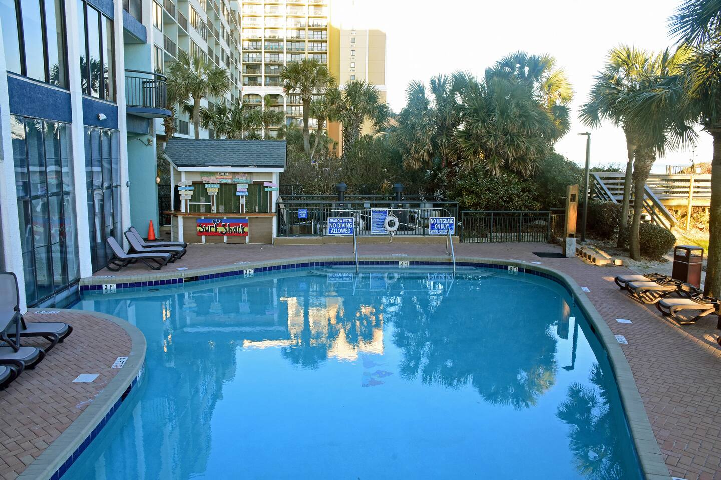 Parking at oceanfront resorts can be tricky, and we are fortunate to have a free onsite parking garage, with one spot available per unit. The garage is typical of Myrtle Beach oceanfront resorts, with tight turns and narrow spaces, so please drive slowly. If you park on the 6th level, you will be just a few steps away from your condo! Please place the parking tag (found inside the unit; one side looks like an advertisement) in your car. Do not park on the ground floor, as it is designated for oversized vehicles, and you may be asked to move. If you have an oversized vehicle taller than 6’6”, your parking options are the ground level of the parking garage or metered parking right across the street and around the corner on 69th Ave. Metered parking is $15 per day and free at night from 12:00 a.m. to 9:00 a.m. If you have the option to drive a smaller vehicle, it would make things easier. Motorcycles are allowed, but trailers, boats, and other recreational vehicles are not.