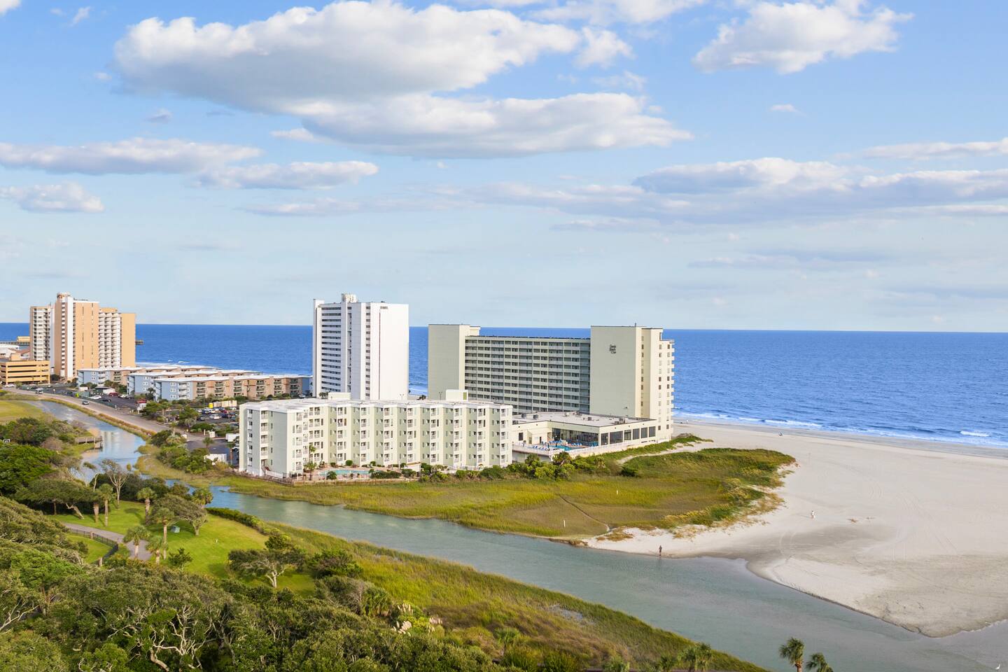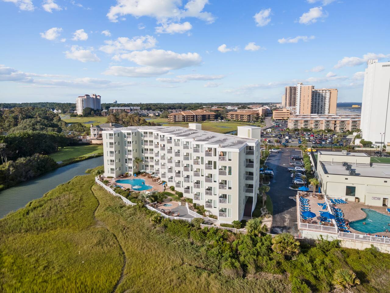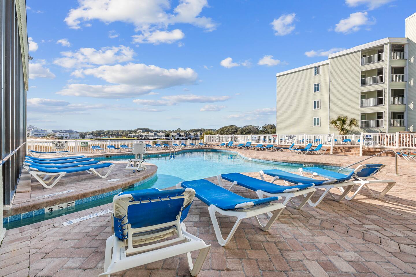 This complex is located at the end of Shore Drive, where the ocean meets the marsh. There's a large stretch of beach with plenty of room to spread out! Walkable to a few bars and shops, including Ocean Annies, River City Cafe and Flip Flops Bar and Grill! You can also access Pegasus Pizza, an ice cream shop and Don't Get it Twisted Bara and Grill without leaving the parking lot!