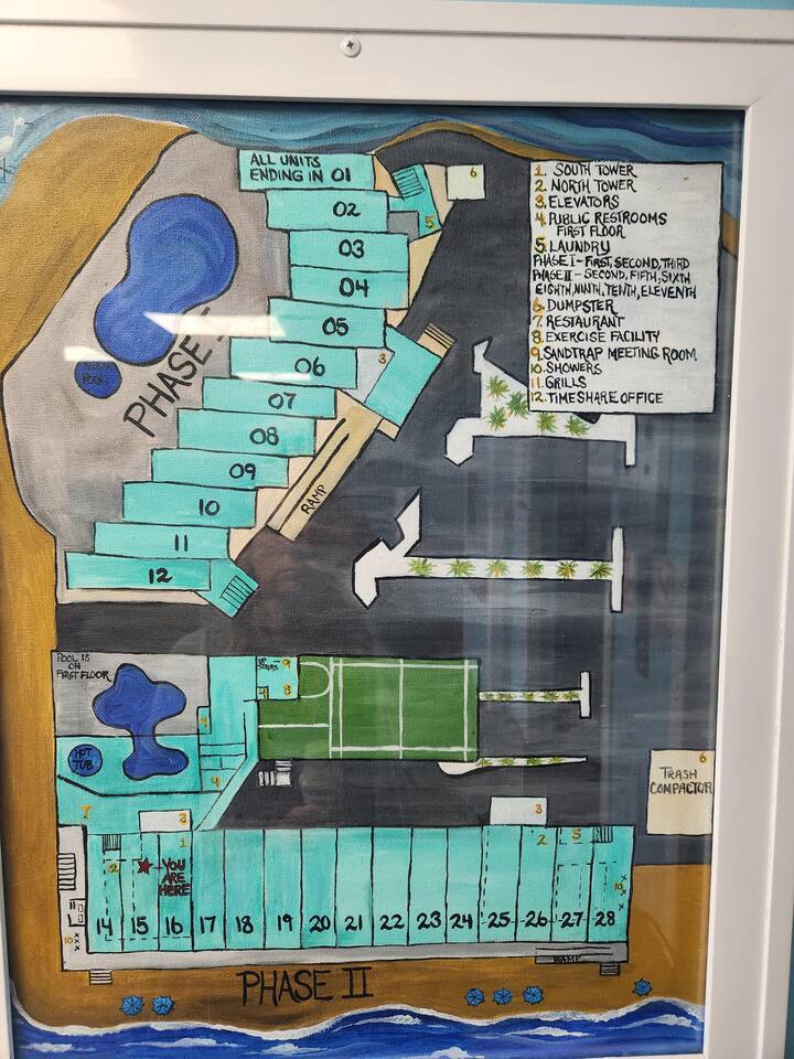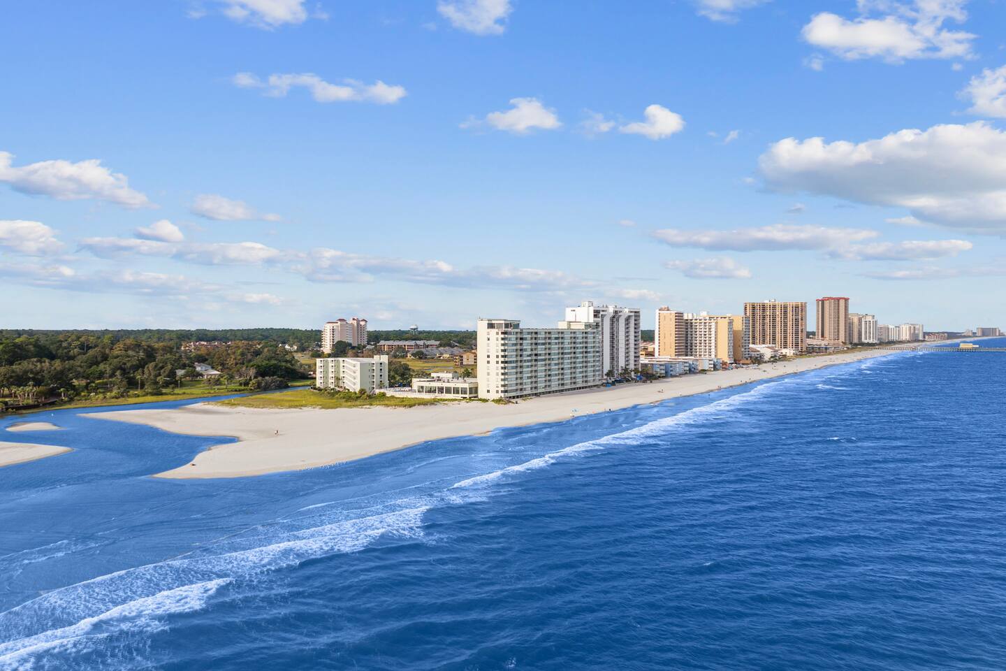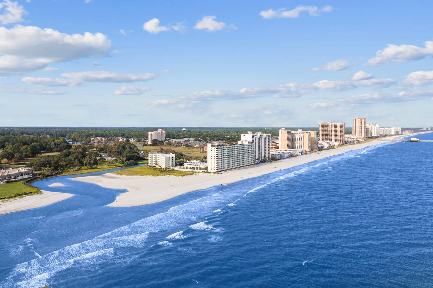 This complex is located at the end of Shore Drive, where the ocean meets the marsh. There's a large stretch of beach with plenty of room to spread out! Walkable to a few bars and shops, including Ocean Annies, River City Cafe and Flip Flops Bar and Grill! You can also access Pegasus Pizza, an ice cream shop and Don't Get it Twisted Bara and Grill without leaving the parking lot!
