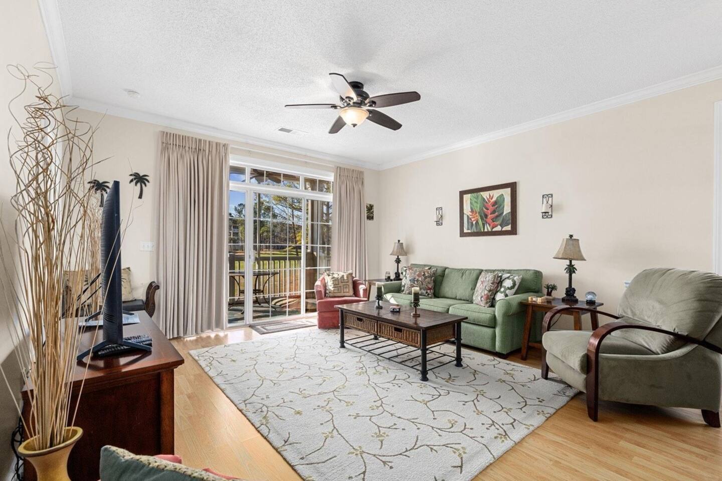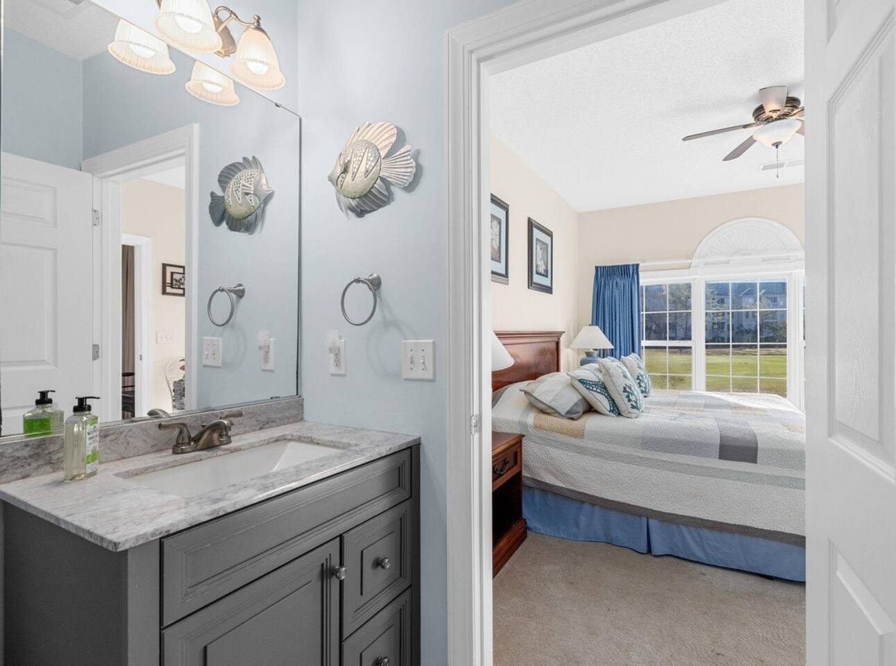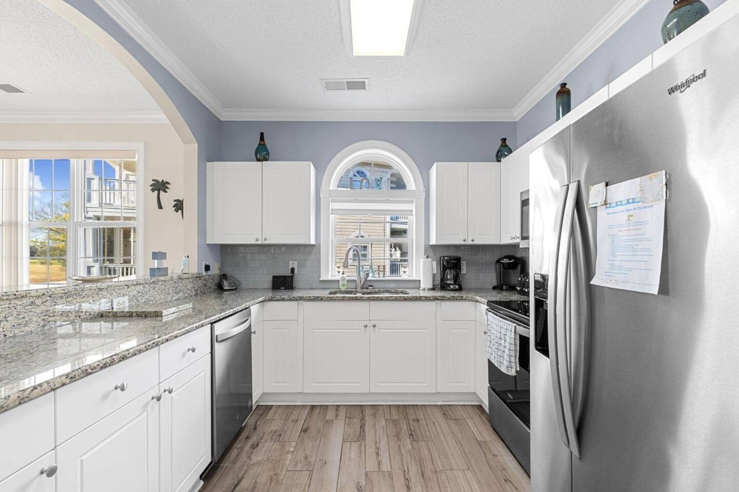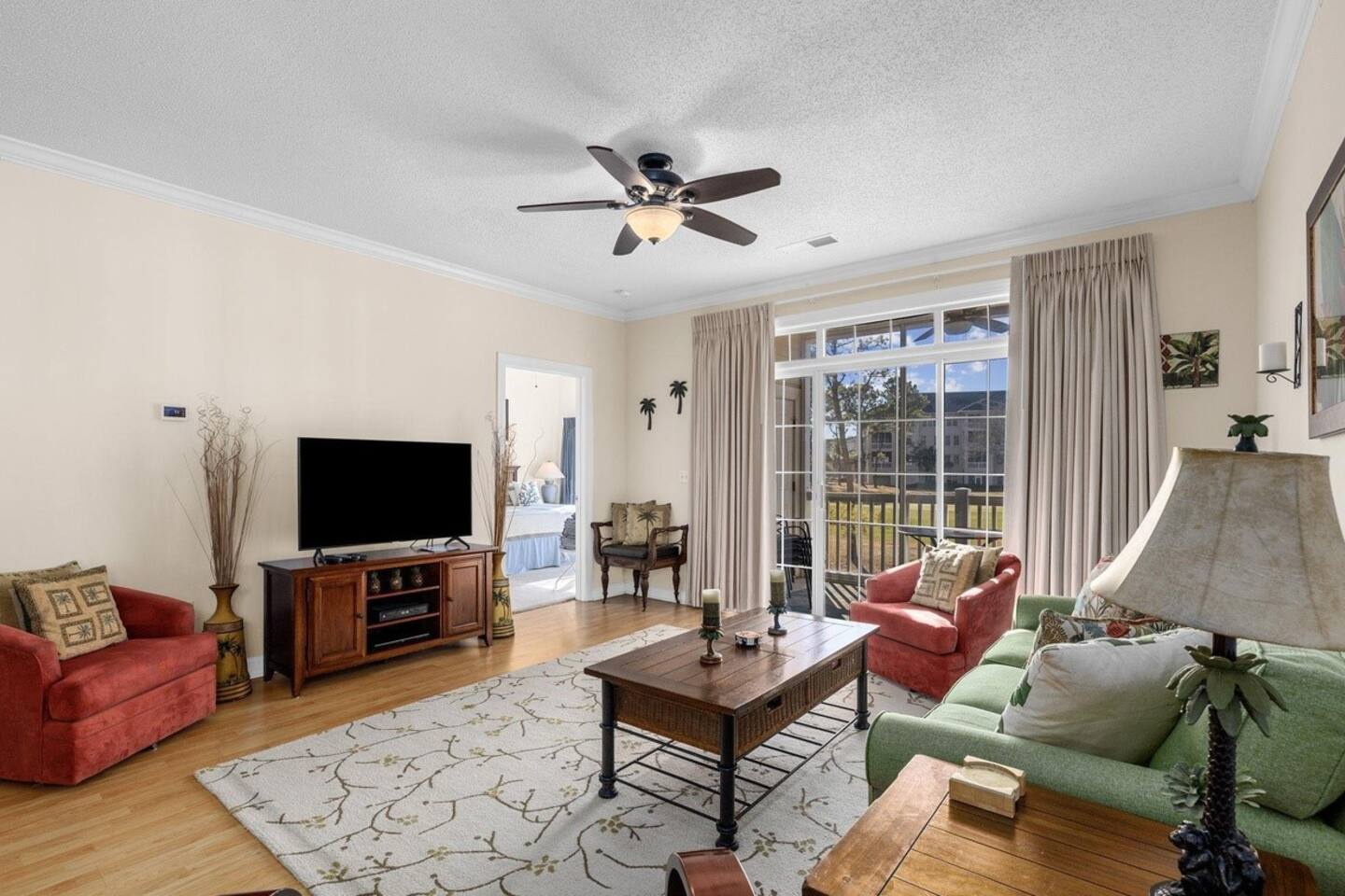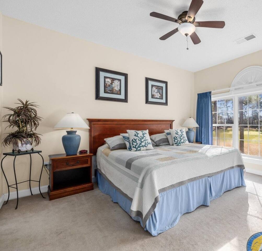 Wonderful 2 bedroom 2 bath, end unit condo in Wedgewood at Barefoot Resort! This condo is loaded with updates and offers some fantastic views of the 15th green of the Norman course. The kitchen has wood grain tile floor, Whirlpool stainless steel appliances, and granite. Both bathrooms have been fully updated featuring fully tiled showers, updated vanities with granite, and wood grain tiled floors. King bed in the primary and twins in the secondary bdrms. A pull out sofa bed is also available.