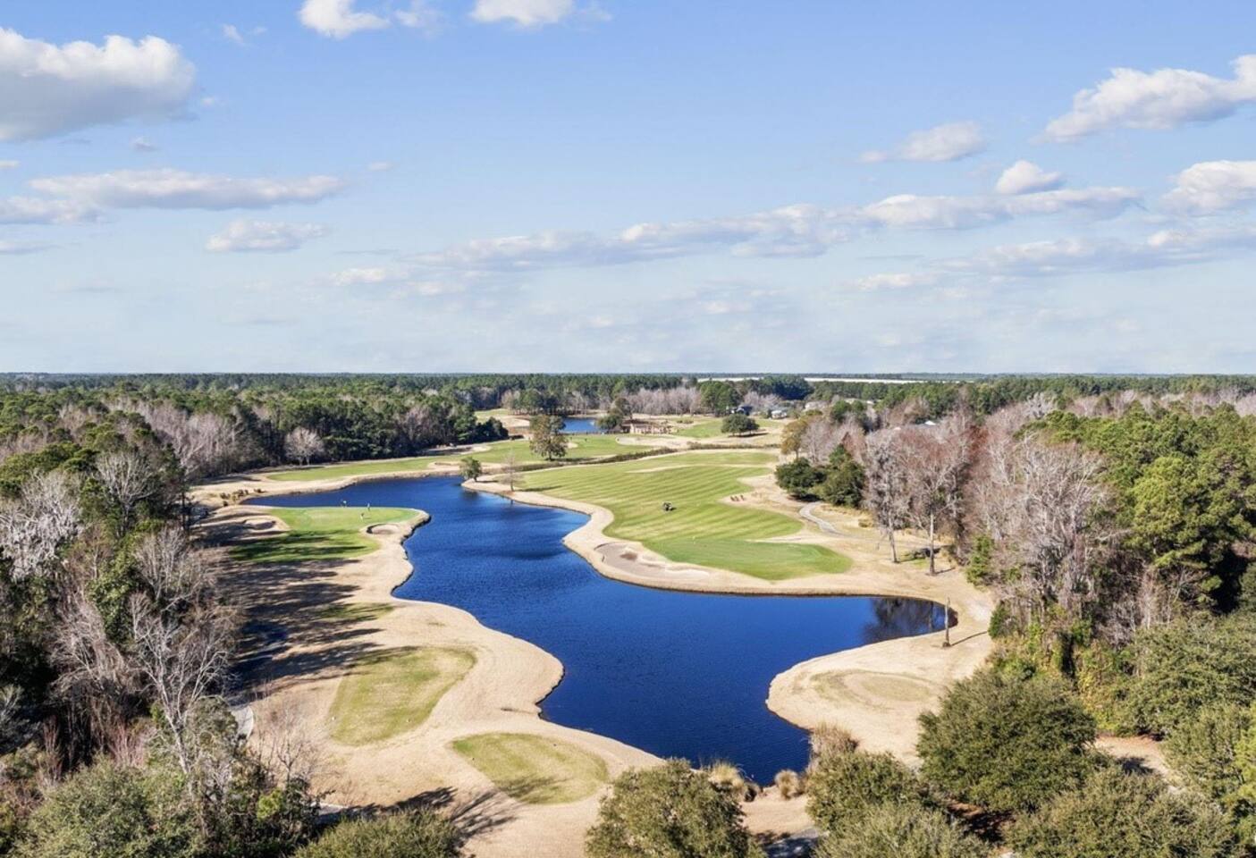 Barefoot Resort features several golf courses, walking trails, benches, many serene ponds, restaurants, a store, an urgent care center.