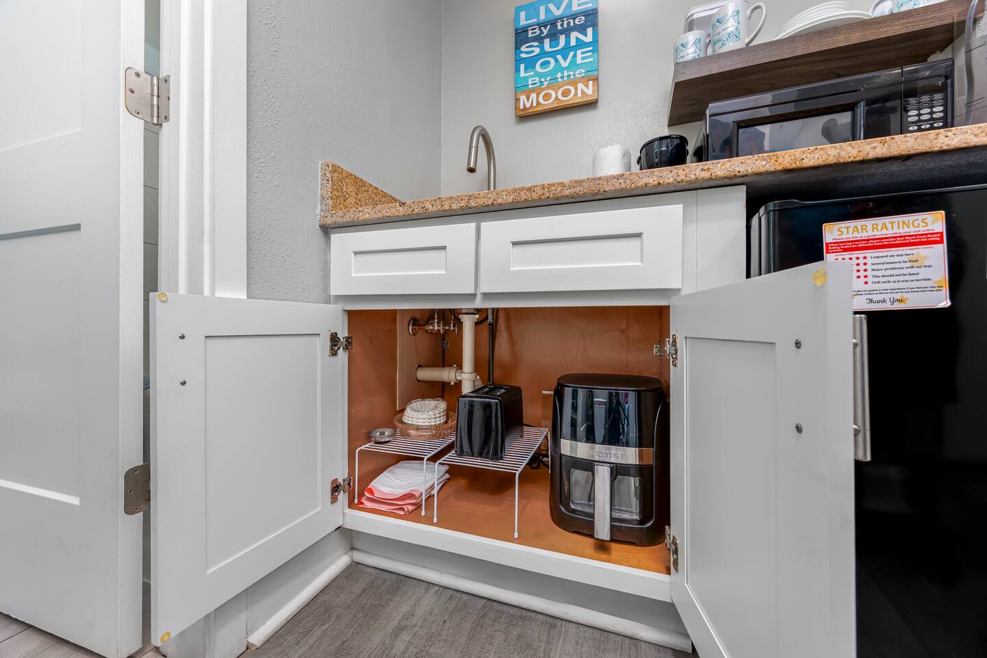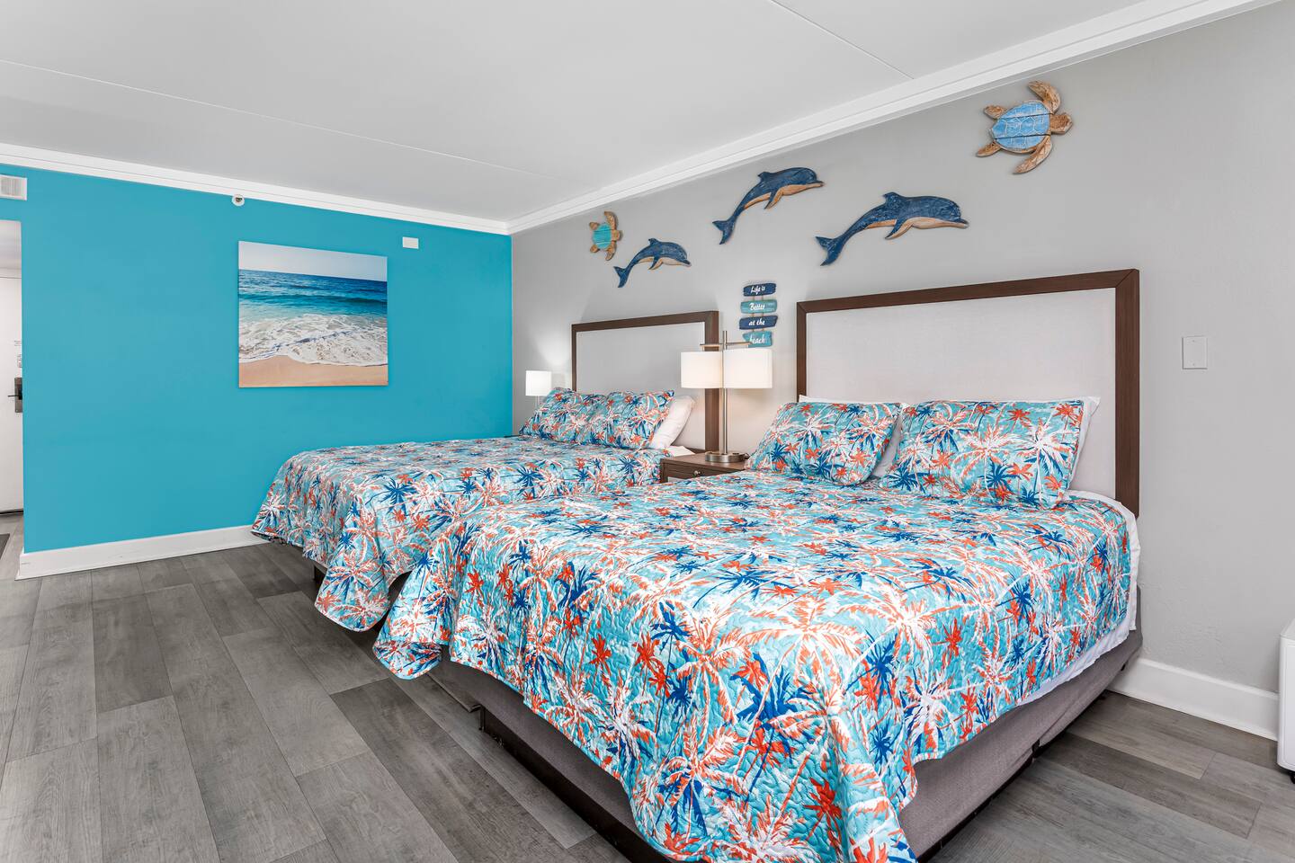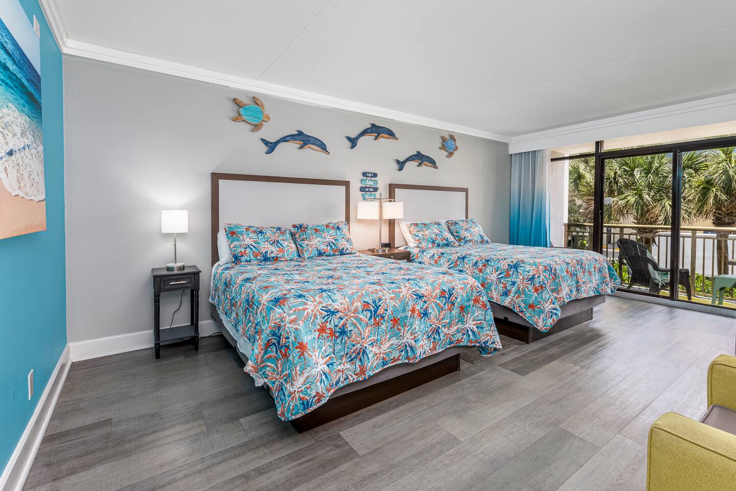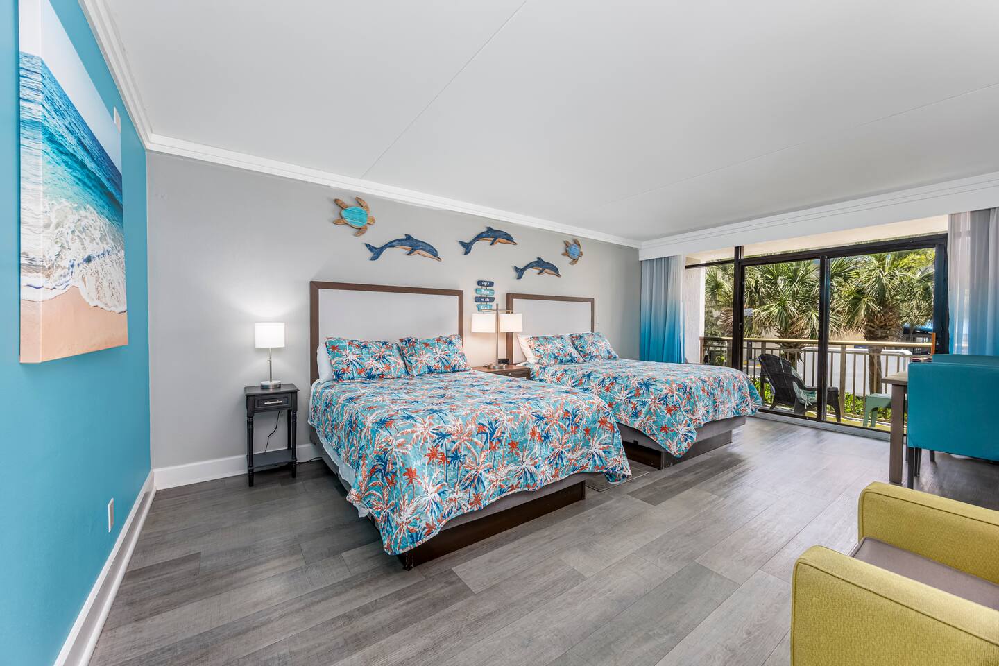 Grande Cayman Oceanfront Resort • 2 Queen Beds • Pools, Water Park, & More! Enjoy the sound of waves from your balcony at our studio condo in Grande Cayman Resort, located in the desirable north end of Myrtle Beach! This modern, bright, inviting studio features 2 comfy queen beds, full bathroom w/ a shower/tub combo, & convenient amenities including a mini fridge, microwave, air fryer & toaster-perfect for light meals! After a day of sun & fun, unwind w/ your favorite shows on the smart TV.