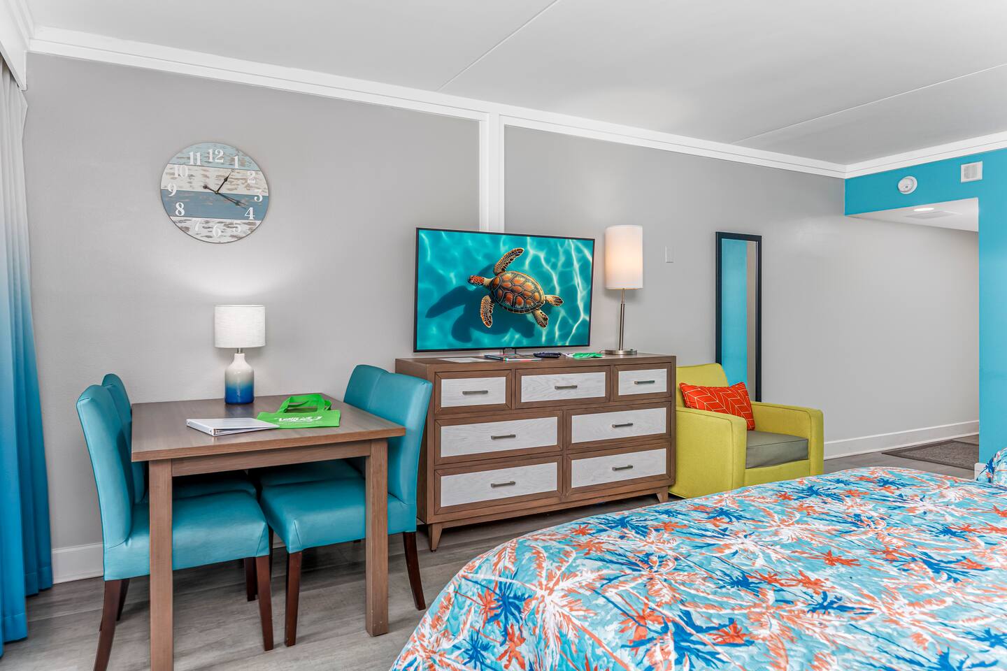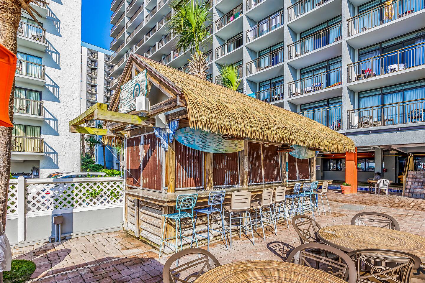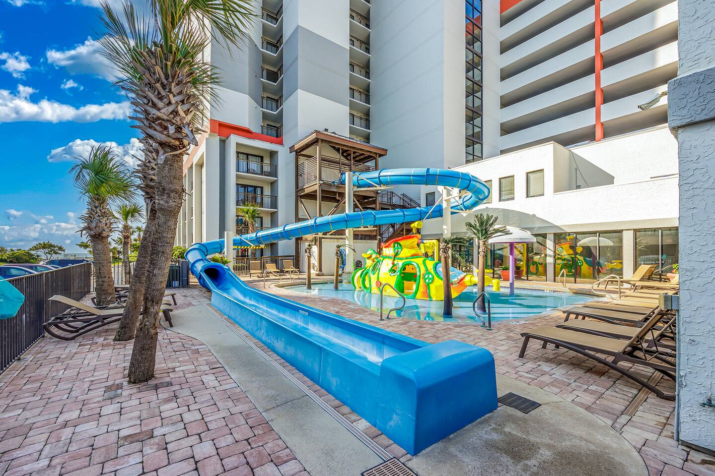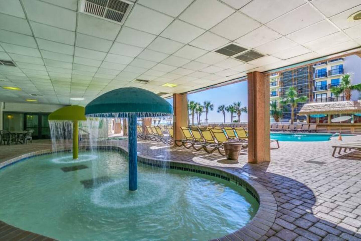 Enjoy added amenities such as: 👶Pack n play 📺Cable TV with Roku so you can stream your favorite shows (bring your own passwords)! ⛱️We also provide a few low seated beach chairs. Please wipe them off before bringing them back into the room! Plus- The resort amenities! Your stay includes access to: 🌊 Oceanfront location 🏖️ Direct beach access 💦 Seasonal water slide & silly submarine water park (great for kids!) 🏊 Indoor & outdoor pools, lazy river, kiddie pools, heated pool & multiple hot tubs 🎯 Life-size games for family fun ☕ On-site Starbucks 🍴 Restaurants and snack bars right at the resort Whether you're looking to relax, explore, or play all day, this is the perfect beach escape for couples, families, or friends. Book your getaway today and make memories in Myrtle Beach! on-site restaurants: Due South is open for breakfast, Lunch and dinner. The Turtle Bay Café is open for lunch. Starbucks is also available on-site. Hours vary based on season water amenities at the resort: 1 Outdoor Pool, 1 Indoor Pool, 1 Kid’s Silly Sub, 1 Water Slide, 3 Indoor Hot Tubs, 1 Outdoor Hot Tub, 1 Indoor Mushroom Kid’s Pool, 1 Indoor Lazy River (250 ft). *All water amenities are heated except for the water slide. pool hours: 9AM to 11PM pool towels: They can be checked out at the pool towel stand, but they are not allowed to be brought to the beach. Please bring your own beach towels. other amenities are offered at the resort: Exercise Room, Gift Shop, Giant Chess & Checkers, Shuffleboard