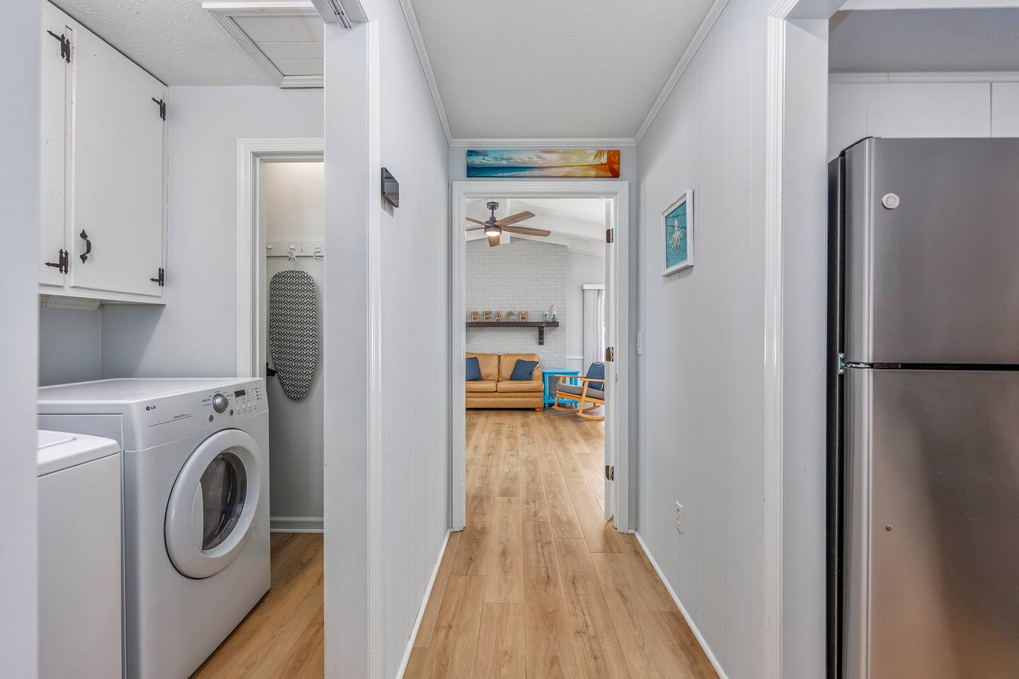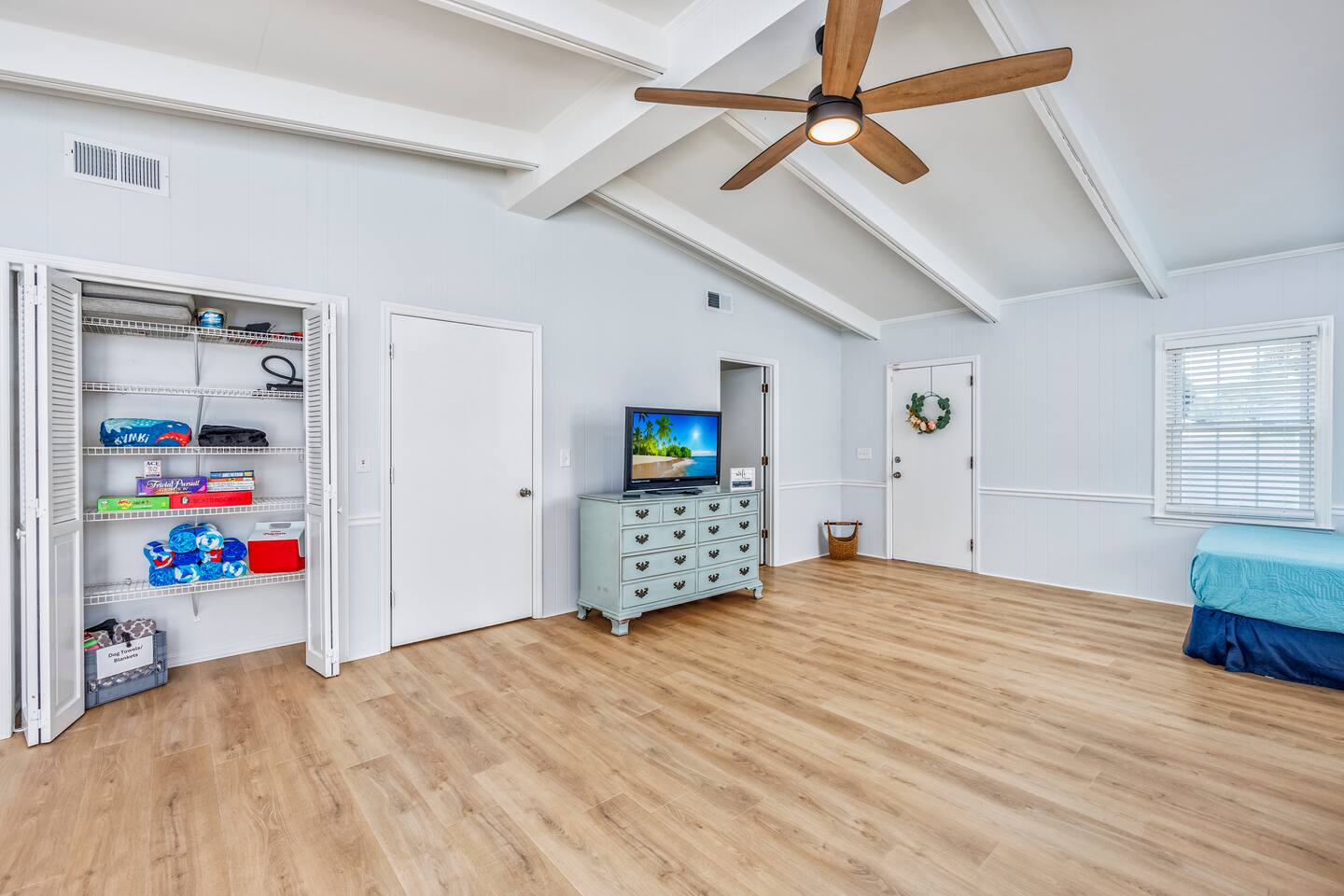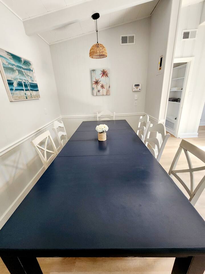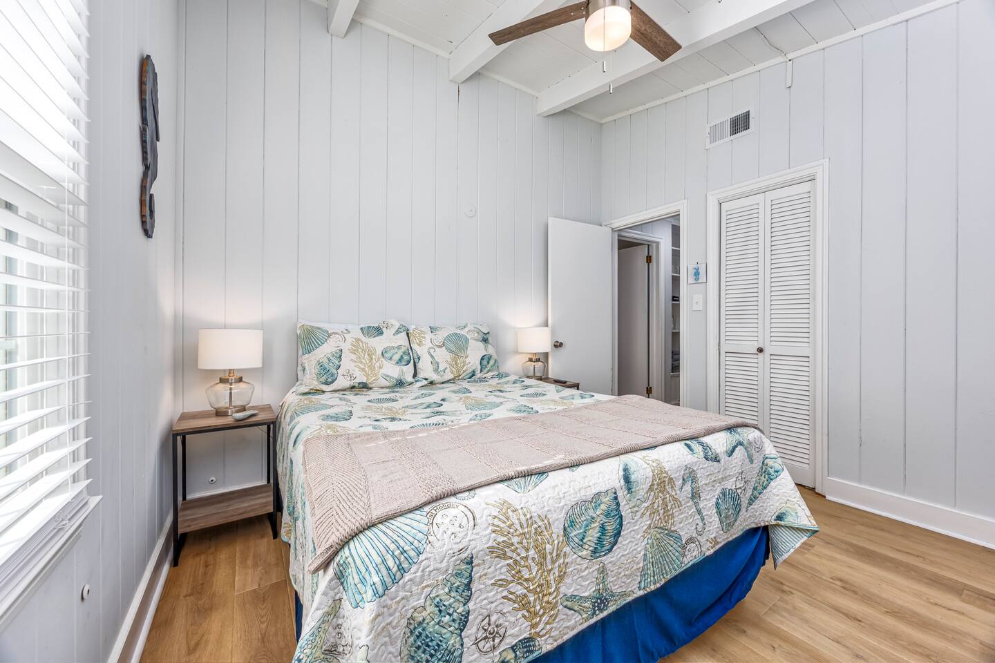 From the outside this home looks like a normal small ranch house, but don't let the fool you! There's plenty of space inside! This ol house has some real charm! From the high arched ceilings with exposed beams to the paneled walls, it's got that classic beach house feel. Skylights, bright and light fun colors, plus lots of windows induce happy vibes! You may even feel nostalgic as memories from visiting the beach as a kid come flooding back! *This is a new listing, and we wanted to get photos up asap. I understand that the place looks a bit bare. When you arrive, there may be more decor- throw pillows, artwork on the walls, more bedside lamps, and just little things to make the home feel more "homey" :) LIVING ROOM: We have a large leather couch and a dual reclining loveseat for your comfort. There's a large flat screen TV mounted on the wall, skylights and a ceiling fan! DINING AREA: The dining area comfortably seats 8. We have an extra leaf and some extra chairs as well for the larger groups who like to all sit down for a meal together. KITCHEN: All new stainless steel GE appliances, including dishwasher. The kitchen is fully stocked with dinnerware and pots and pans for cooking. LAUNDRY ROOM: Fairly new washer and dryer. This is where you will also find the extra table leaf. BEDROOMS: Each bedroom has a flat screen TV with streaming options. Please note you must log in to your own accounts. We do not offer cable, but there are some free roku channels, etc if you don't have any streaming accounts. There are ceiling fans in each room. There is one bed per most rooms. One king bedrrom. Total of 3 queen bedrooms (one is a sleep number with adjustable firmness). One room has 2 queen beds. In the 5th bedroom there is a full size bed (this may be switched to a day bed with trundle in the future). It also has a loveseat, futon, and a rocking chair. Please note-you can shut the doors for privacy but the backyard is accessed through this room. It's a rather large room and can double as a family room. We may add more sleeping space to the 5th bedroom in the future. YARD: The backyard is fenced in with a large inground pool and a hot tub to enjoy. It's big enough to bring your yard games, too! We also have a couple of picnic tables if you want to eat outside. BATHROOMS: There are two bathrooms- one with a shower (recently updated) and the other has a tub/shower combo. It's a bit outdated, but functional! Throwback bathrooms can be fun though, right? Who doesn't love peach colored tile?! Things to note: ENTRY: You must climb steps to get into the home. SAFETY: Families are welcome, but the home is not baby-proofed. Bring your own safety devices and keep children out of rooms with free-standing closets. And of course watch them in the yard! There are some steps up or down to get into some of the rooms so keep that on mind, especially when choosing which bedroom to stay in. COMFORT: We have central heat/air in most of the house. Two of the bedrooms have their own heating and cooling devices (wall unit in one room and portable A/C unit in the other). POOL: Please read and abide by pool rules posted outside. No running, diving, horseplay, no glass anywhere near the pool. No food in the pool. Use swim diapers on babies/children who cannot verbalize the need to get out and use the restroom. There is no lifeguard therefore you and your group will be swimming at your own risk. No children under the age of 14 or people who cannot swim should be allowed in the pool unless supervised by an able-bodied adult who can swim. If you are staying in the colder (fall or spring) season and want the pool heated, we can offer that option for $25/day (all booked nights will count as 1 day). The heater will not be sufficient in the winter. HOT TUB: Pool rules apply for hot tub as well, Read and abide by hot tub rules posted outside. No unattended children in hot tub. QUIET HOURS: 11pm-7am. This home is located on a residential block with full-time residents on either side. You must be respectful of quiet hours. SET-UP OF HOME: This home is unique and all 5 bedrooms can be private, however the 5th bedroom is unique. Doors can be closed to make it private, but typically that room will be used to access the backyard. It won't be an ideal sleeping space for someone who goes to bed early, or if others are still going in and out of the backyard. PETS: We welcome up to two dogs, but we must approve them first. They must be UTD on shots. No aggressive breeds (full bred or mixes of: Pit Bull, Doberman, Rottweiler, German Shepherd, Aikita, Husky, Chow, Wolf or Wolf-Dog Hybrid, Alaskan Malamute, Great Dane, St. Bernard, Rhodesian Ridgeback, Stafford Terrier, Bull Mastiff, any attack, non-domesticated or guard dogs are NOT covered by our homeowner's insurance therefore won't be accepted). If you have one of these breeds and carry liability insurance on your dog, please send proof with request. We may also make an acception if you sign a document accepting all liability for your dog, along with semding us a valid ID. The dog(s) must be housebroken. If you are found bringing in an unauthorized pet, the pet fee will be doubled. If the pet is considered a nuisance, aggressive breed, or more pets than allowed are found to have entered the home- your stay could be cancelled without refund. Please see house rules regarding pets. Sorry. we will not be accepting cats or any exotic, farm or other animals at this time.