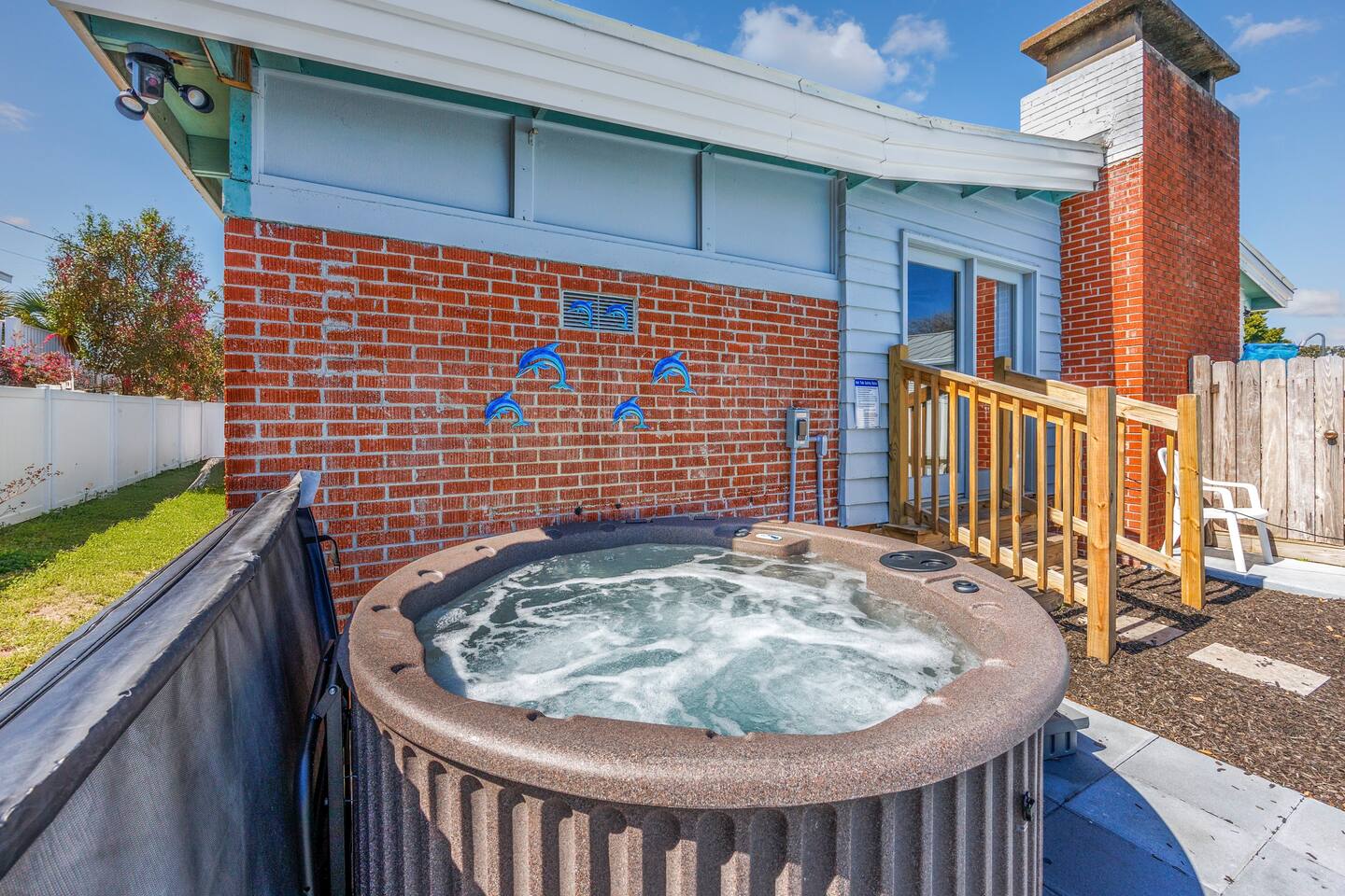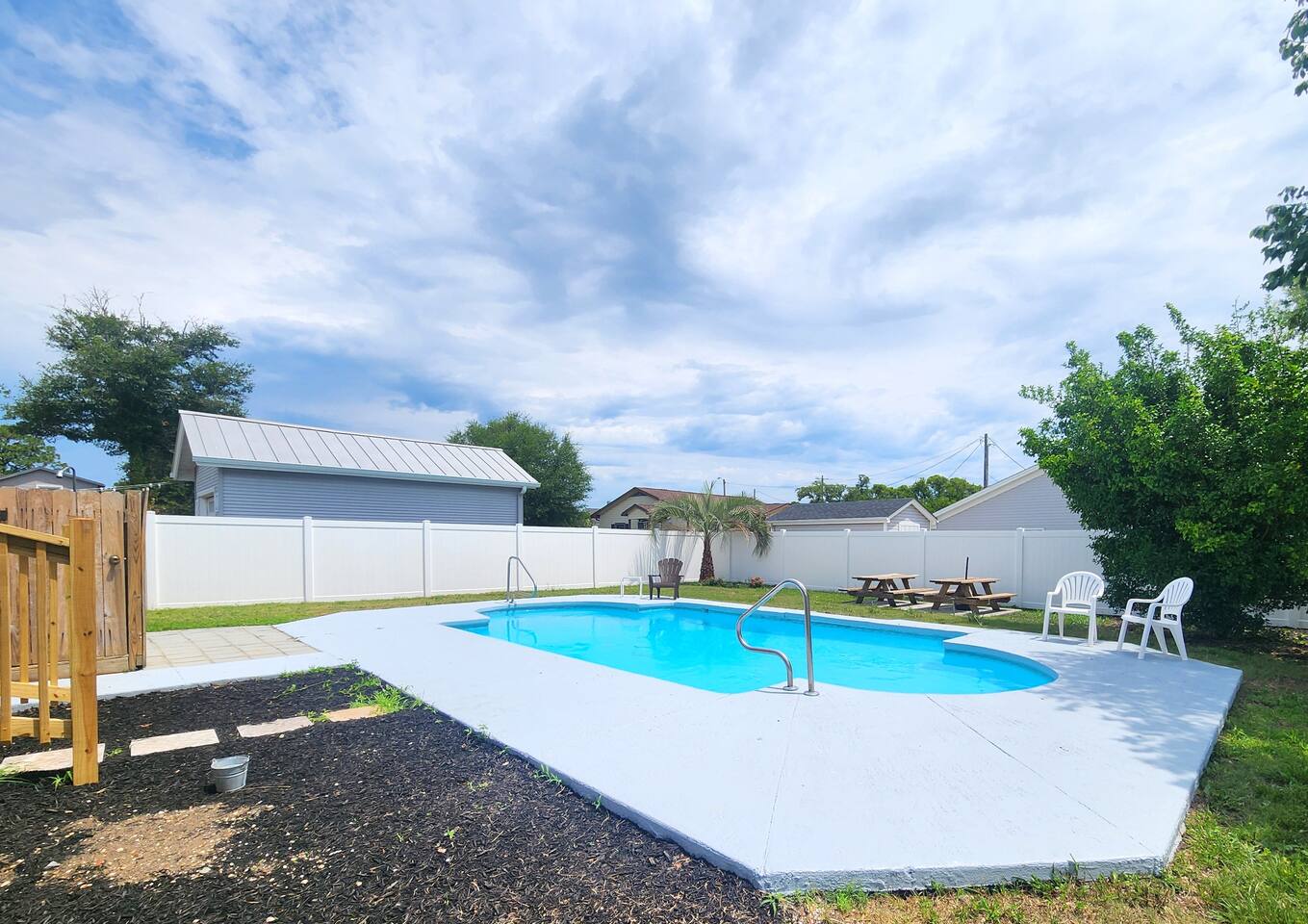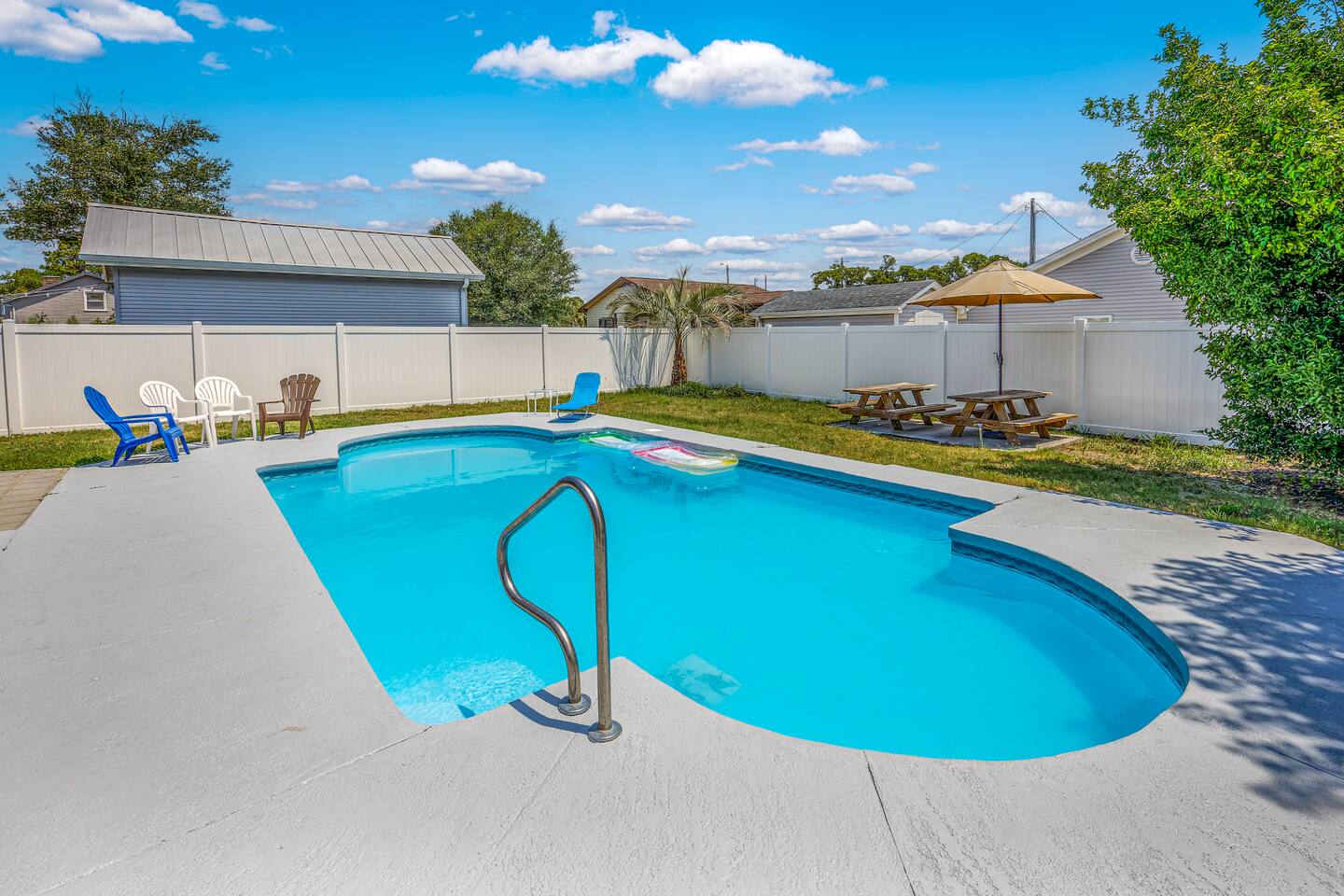 This spacious beach house has room to sleep 10 w/ a fenced yard for fido & a private pool for the fam! We recently added a hot tub as well! This unique home is currently being updated, therefore you may encounter updated furnishings upon arrival. See photos descriptions for any planned changes! This home is located in the Cresent Beach area of North Myrtle Beach, about halfway between Barefoot Landing & the popular Main Street! Quick walk to the beautiful beach! Golf carts & motorcycles allowed, free parking for up to 4 vehicles.
