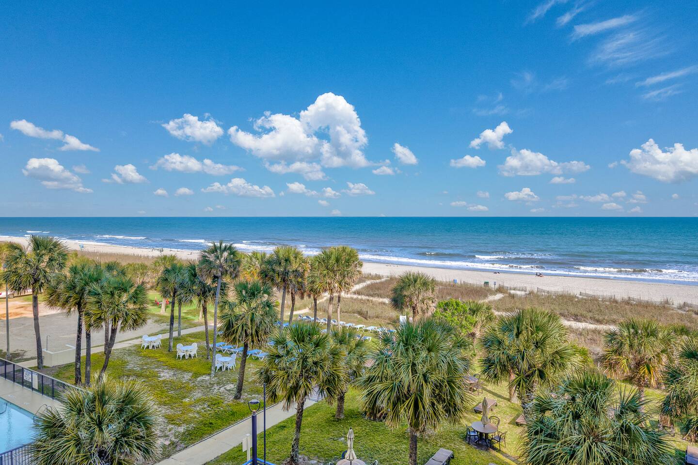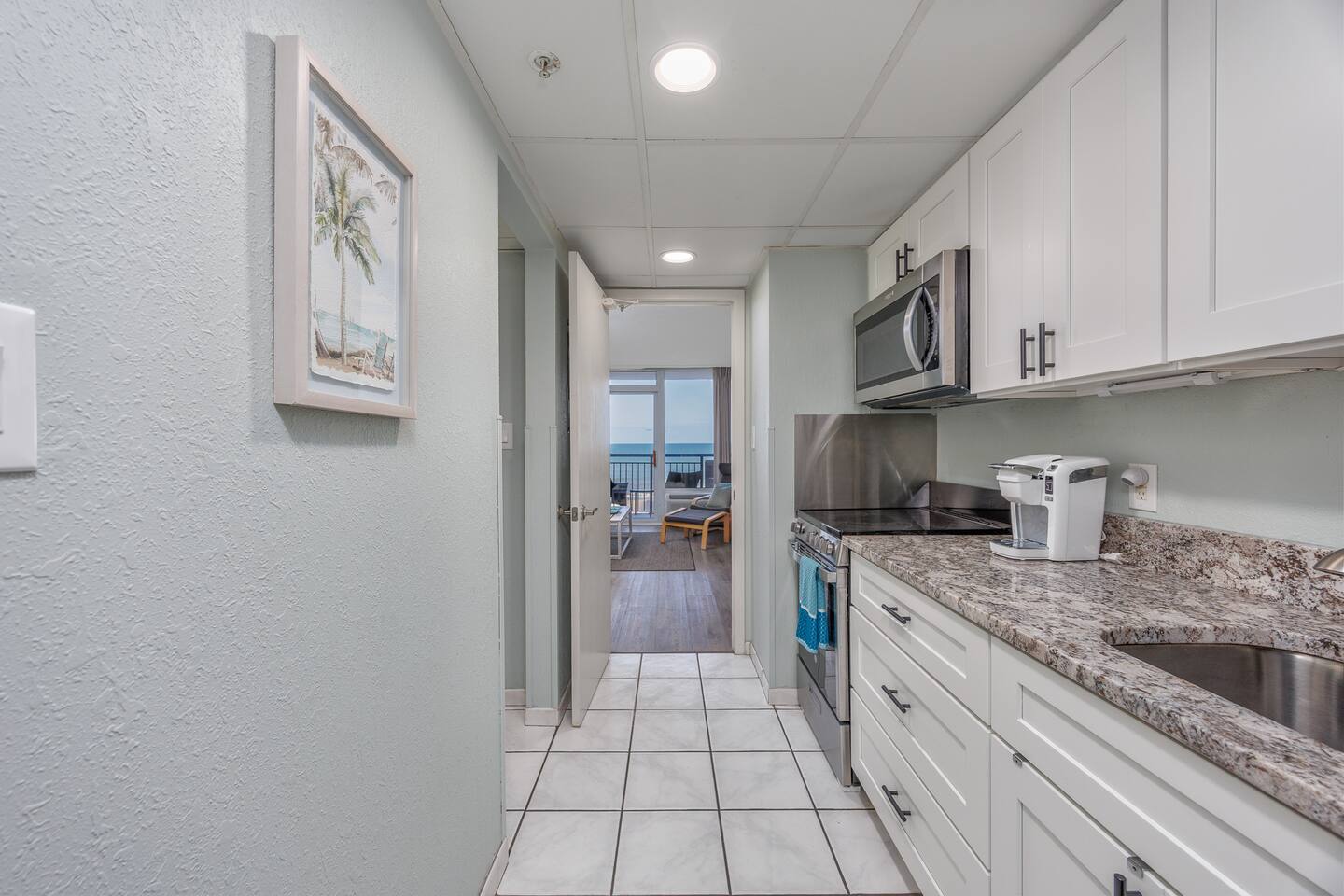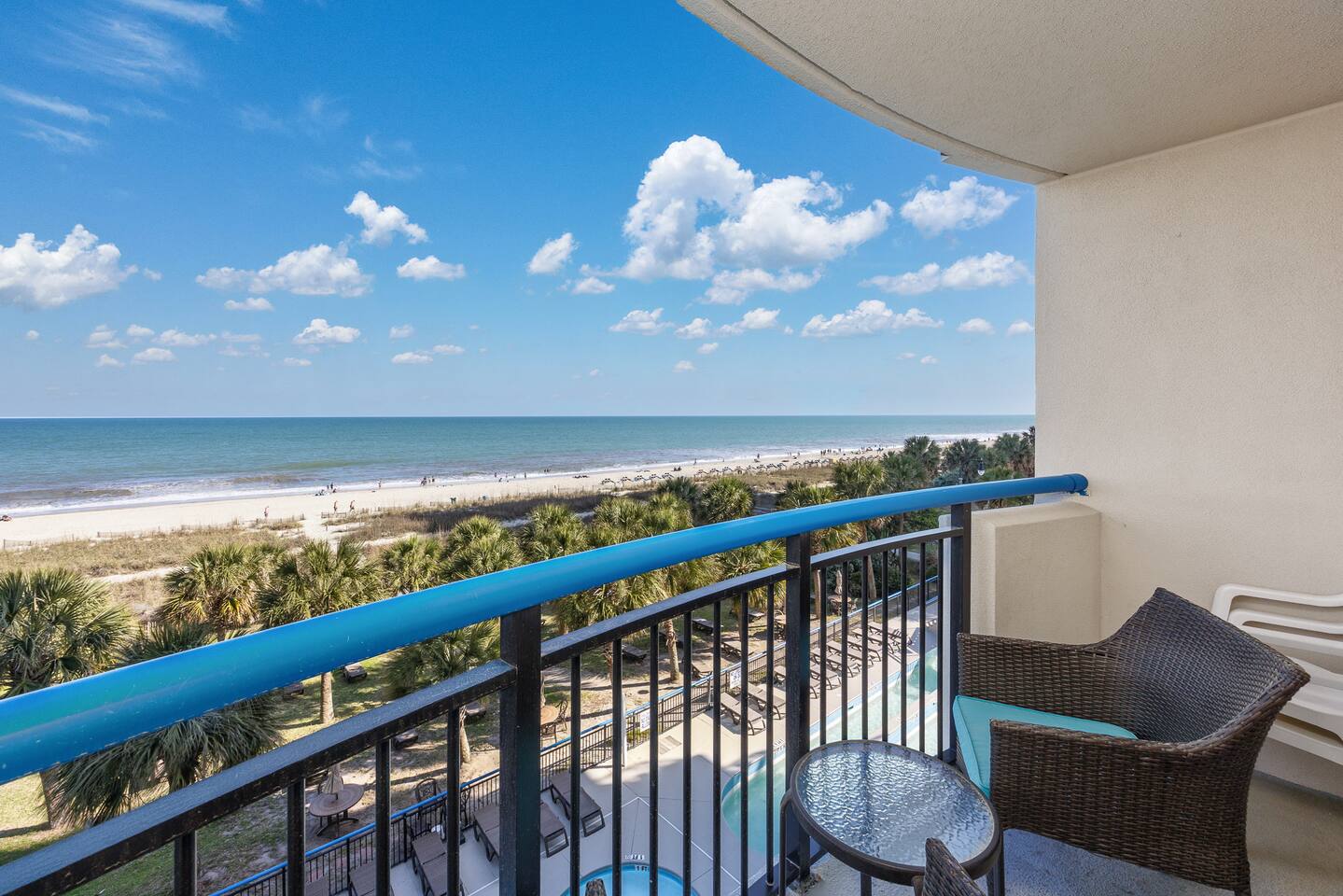 -Gorgeous Oceanfront Views from a Private 3rd-floor Balcony -3 pools (HEATED indoor pool), 2 hot tubs, and a lazy river -Walking distance to restaurants, bars, the Boardwalk, Pier 14, and the notorious Sky Wheel -Full-sized kitchen stocked with the essentials -FREE high-speed wi-fi -FREE on-site parking and parking garage (2 spaces) This condo features the living room on the ocean side of the building. If you sleep in the murphy bed, you can wake up to views of the ocean! Unlike some units, our condo features interior doors on both sides of the galley-style kitchen, which allow privacy in the bedroom and/or living room while maintaining access to the kitchen and bathroom for other guests. ⭐Highlights⭐ -Professionally cleaned between each guest -2 queen beds and 1 murphy bed -Flat screen cable TVs -Free high-speed wi-fi -Full-sized kitchen stocked with the essentials -Linens, starter pack of trash bags, paper towels, etc. are provided -Hair dryer, soaps, shampoo, and more. See the full list of amenities! -Secure building