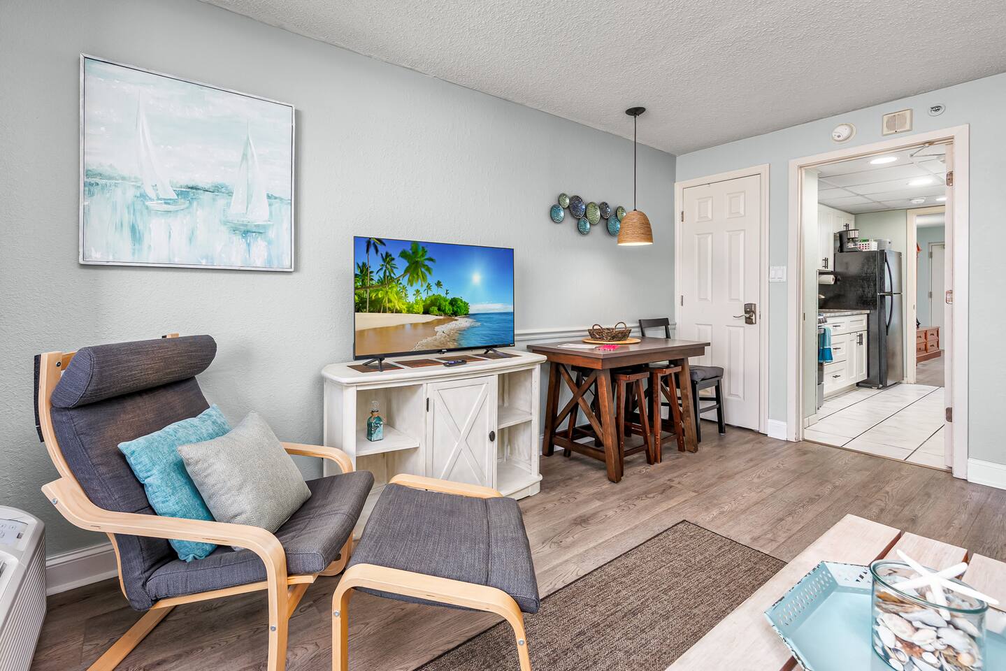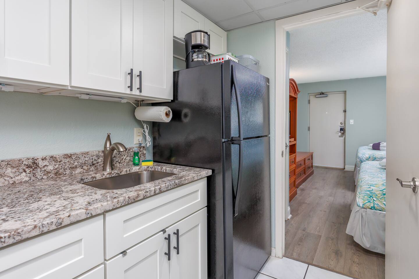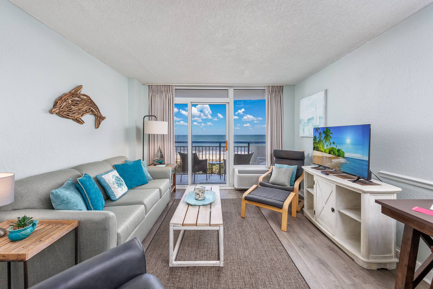 -Gorgeous Oceanfront Views from a Private 3rd-floor Balcony -3 pools (HEATED indoor pool), 2 hot tubs, and a lazy river -Walking distance to restaurants, bars, the Boardwalk, Pier 14, and the notorious Sky Wheel -Full-sized kitchen stocked with the essentials -FREE high-speed wi-fi -FREE on-site parking and parking garage (2 spaces) This condo features the living room on the ocean side of the building. If you sleep in the murphy bed, you can wake up to views of the ocean! Unlike some units, our condo features interior doors on both sides of the galley-style kitchen, which allow privacy in the bedroom and/or living room while maintaining access to the kitchen and bathroom for other guests. ⭐Highlights⭐ -Professionally cleaned between each guest -2 queen beds and 1 murphy bed -Flat screen cable TVs -Free high-speed wi-fi -Full-sized kitchen stocked with the essentials -Linens, starter pack of trash bags, paper towels, etc. are provided -Hair dryer, soaps, shampoo, and more. See the full list of amenities! -Secure building