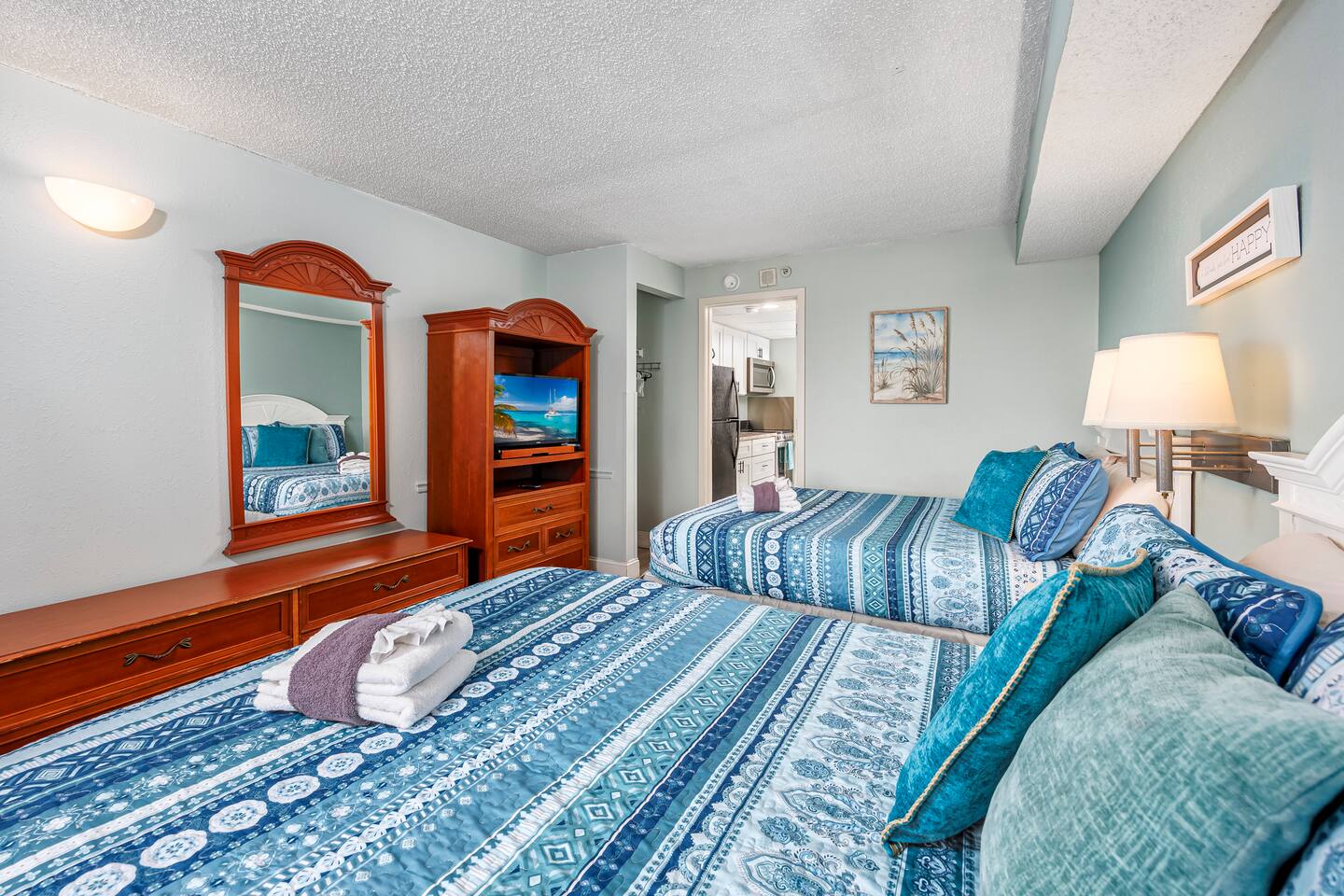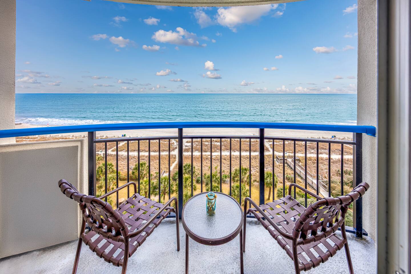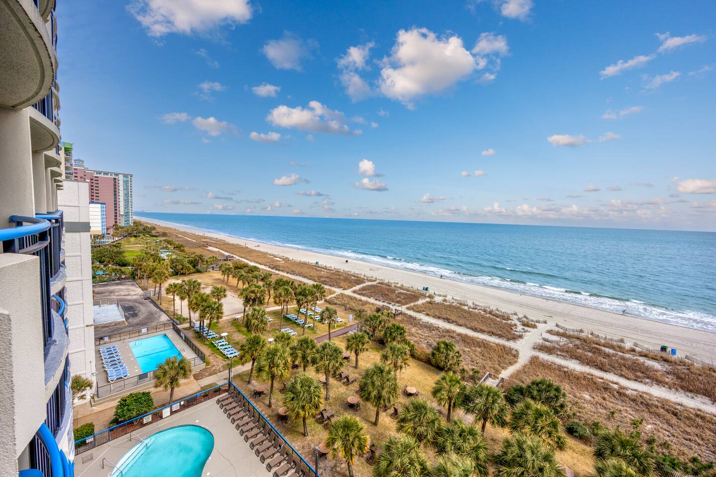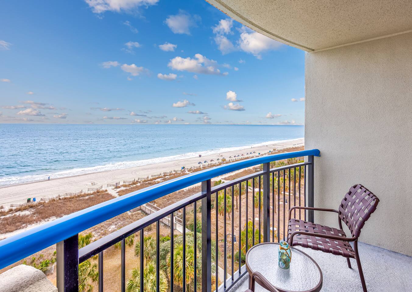 Welcome to our oceanfront condo with indoor and outdoor pools, lazy river and hot tubs! ! Enjoy your drinks on the private 7th-floor balcony where the skyline offers both sunrise and sunset cloudscapes! You’ll be in the heart of Myrtle Beach, minutes from world-class golf courses, the Convention Center, Broadway at the Beach, and walking distance to the 21st Avenue restaurants just around the corner. With 2 queen beds plus a full sized murphy bed, there's room to sleep 6 in this 1 bedroom condo!