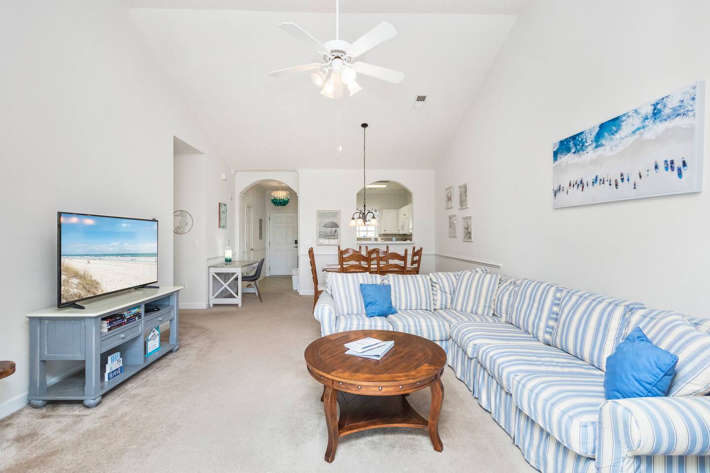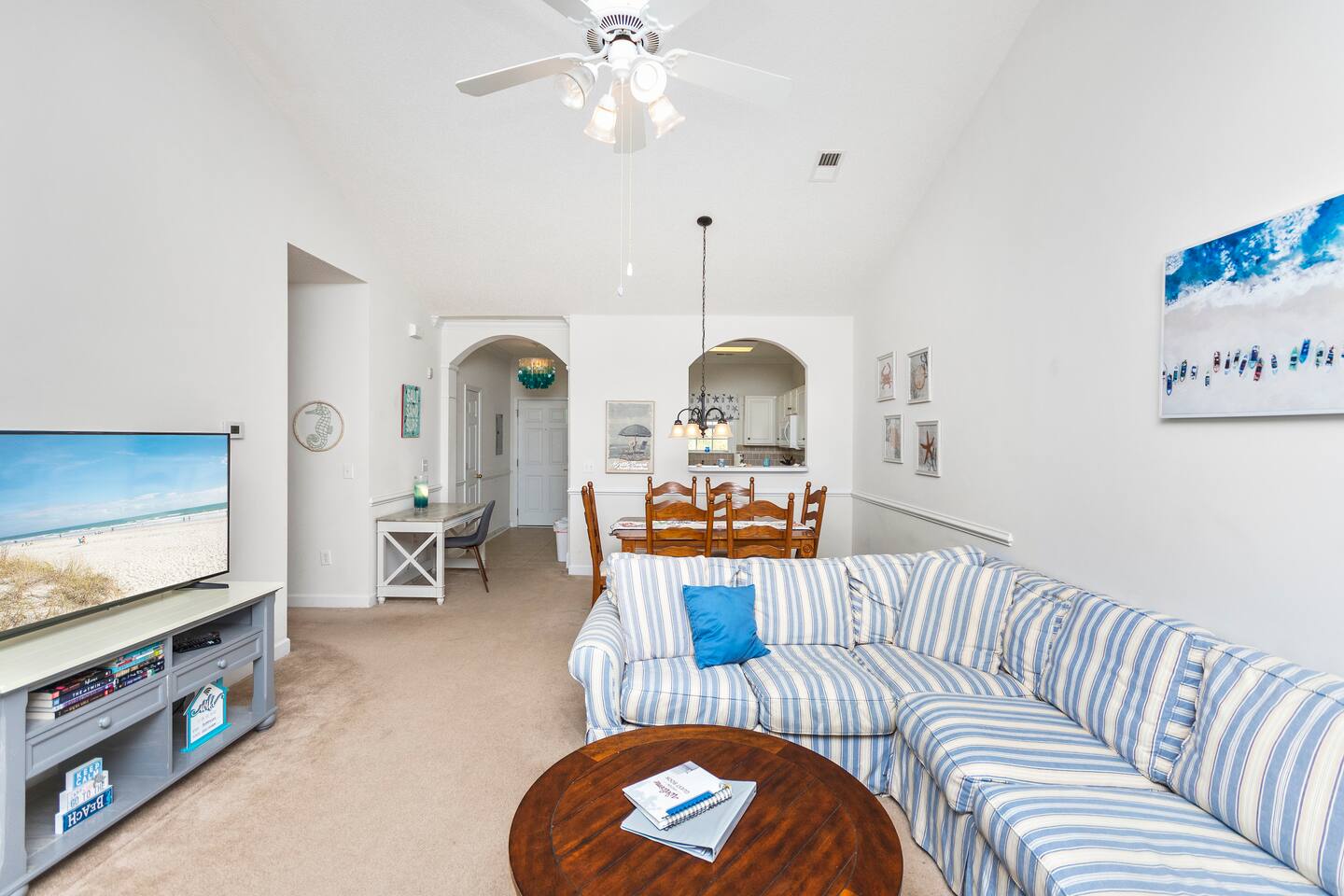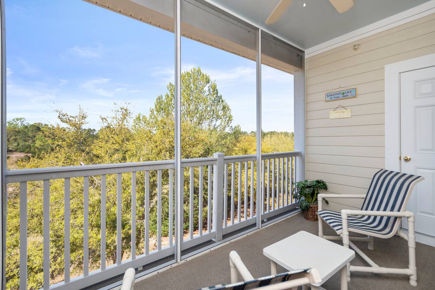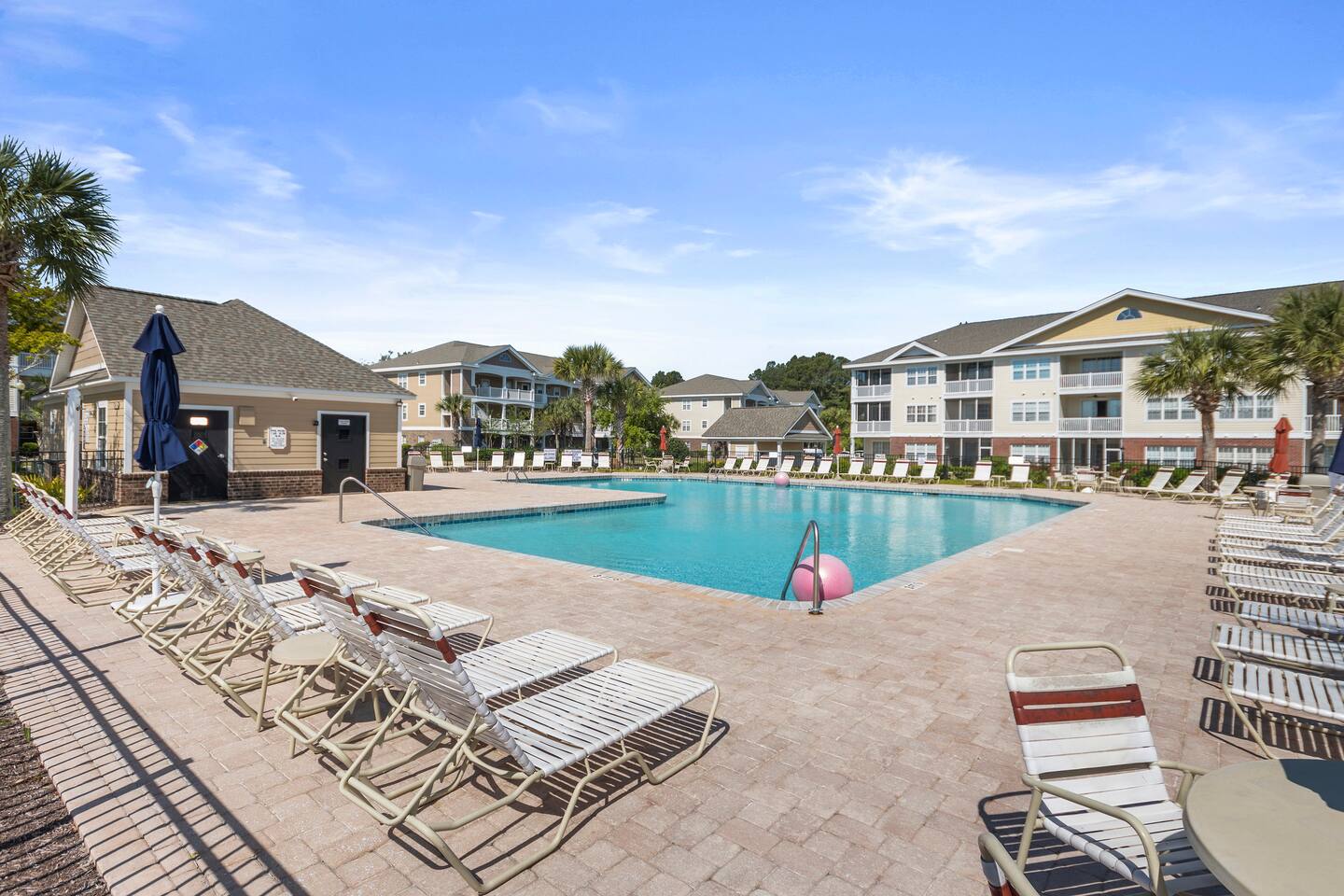 Experience a comfortable and peaceful retreat close to the beach, pools, golf courses, and Myrtle Beach attractions. You’ll love the area’s quiet tranquility and relaxing vibe. Everything you need is here – from a well-equipped kitchen to cozy bedrooms and plenty of living room seating to a screened balcony. You’ll find a golfer’s paradise with multiple nearby courses. Close to shopping, dining, and entertainment options. Pool passes provided! Washer/dryer + 3 TVs.