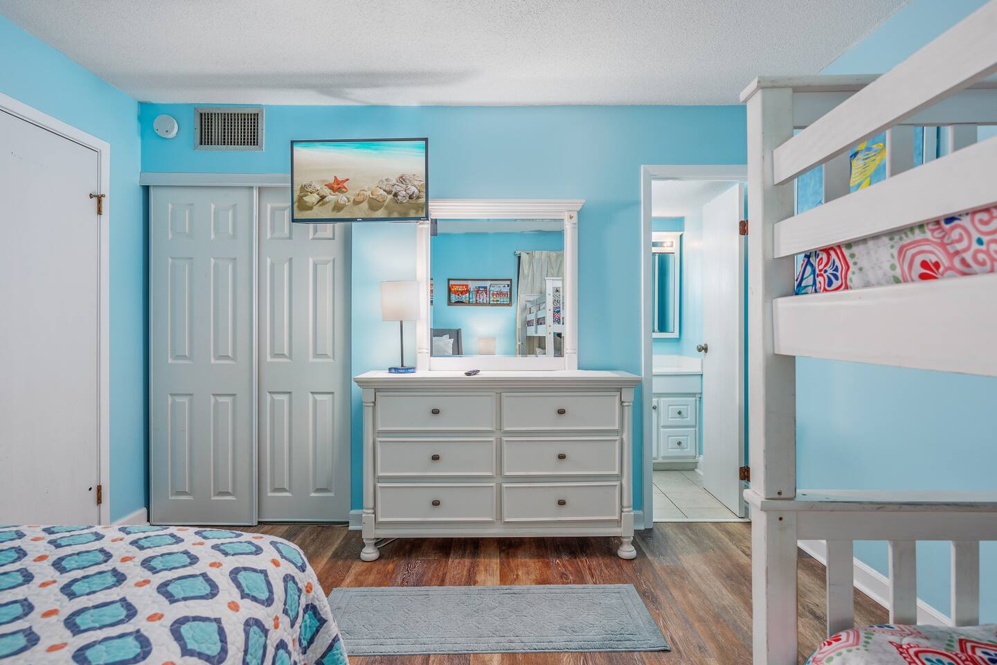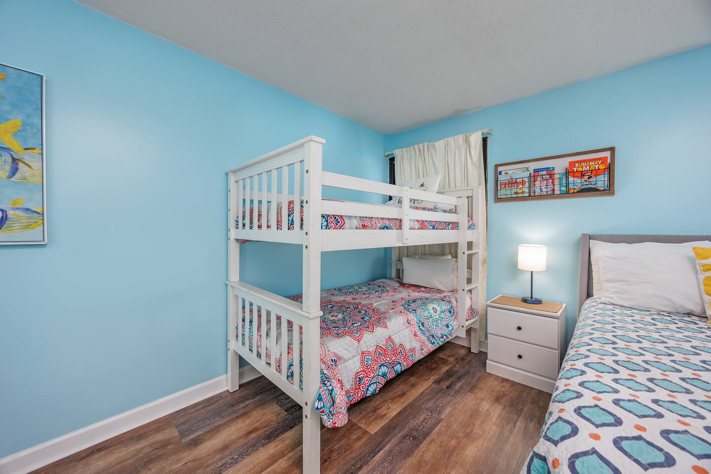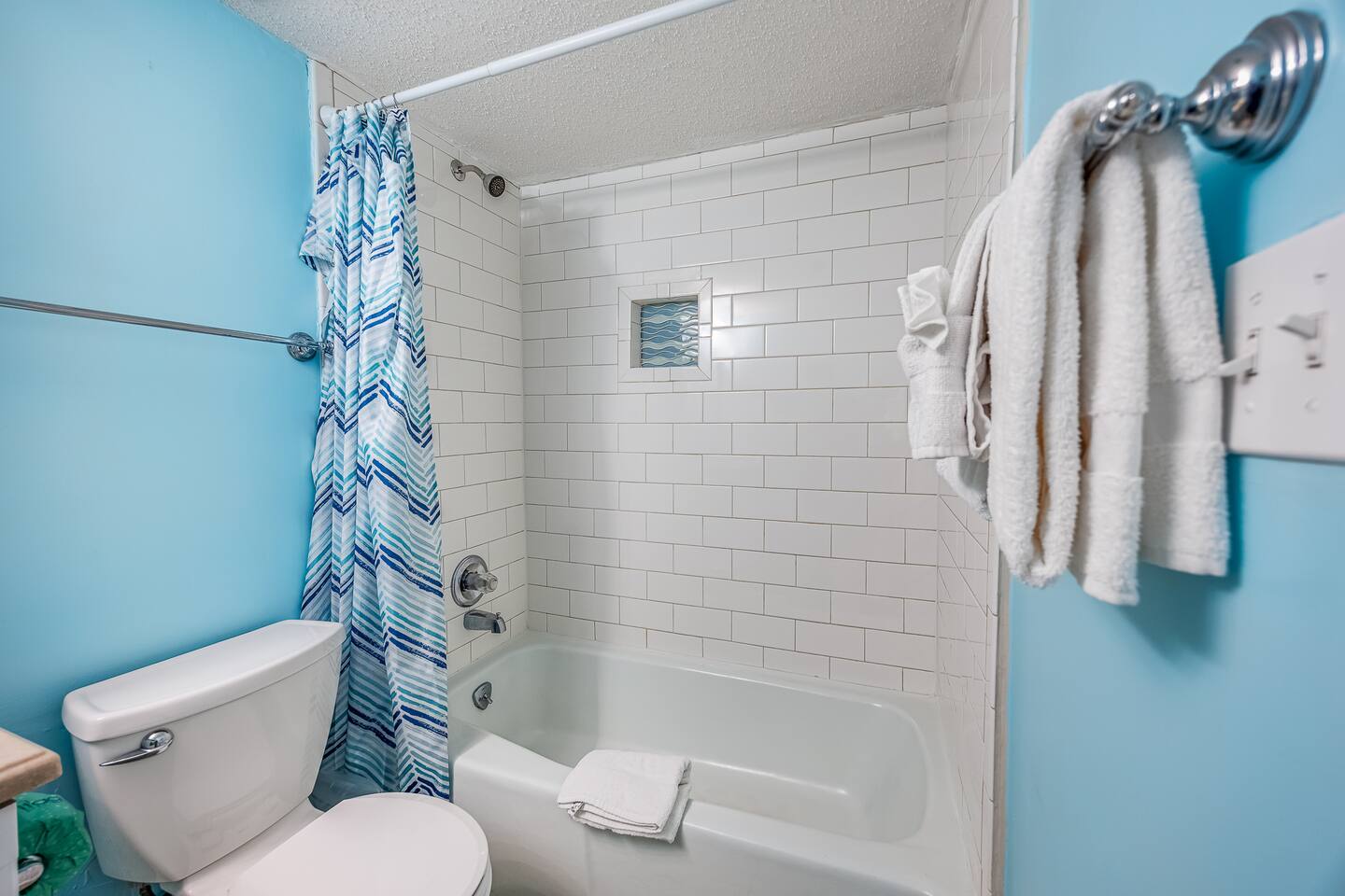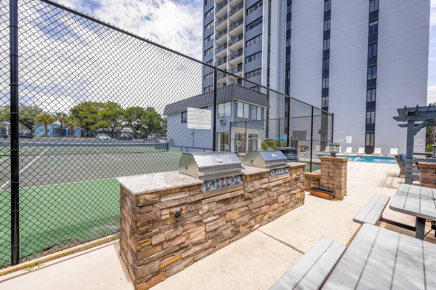 The primary bedroom features a king bed, and the secondary bedroom features a set of bunk beds (single over single) and a queen bed as well. If you have kids (or adults) that don't like to share a bed, there is a pull-out sofa bed as well! Holiday Towers has outstanding amenities, including a fabulous swimming pool, outdoor jacuzzi, as well as an indoor jacuzzi. You will experience all of the finest in outdoor amenities, including a tennis court, and outdoor grills and an area to hang out with your friends/family! You will be 3 minutes away from the Myrtle Beach boardwalk, the Myrtle Beach Skywheel, and all of that which makes the Grand Strand what it is. Broadway at the Beach is less than 10 minutes away, and the Myrtle Beach International airport is less than 15 min away. Your whole group will enjoy easy access to everything from this centrally located place!