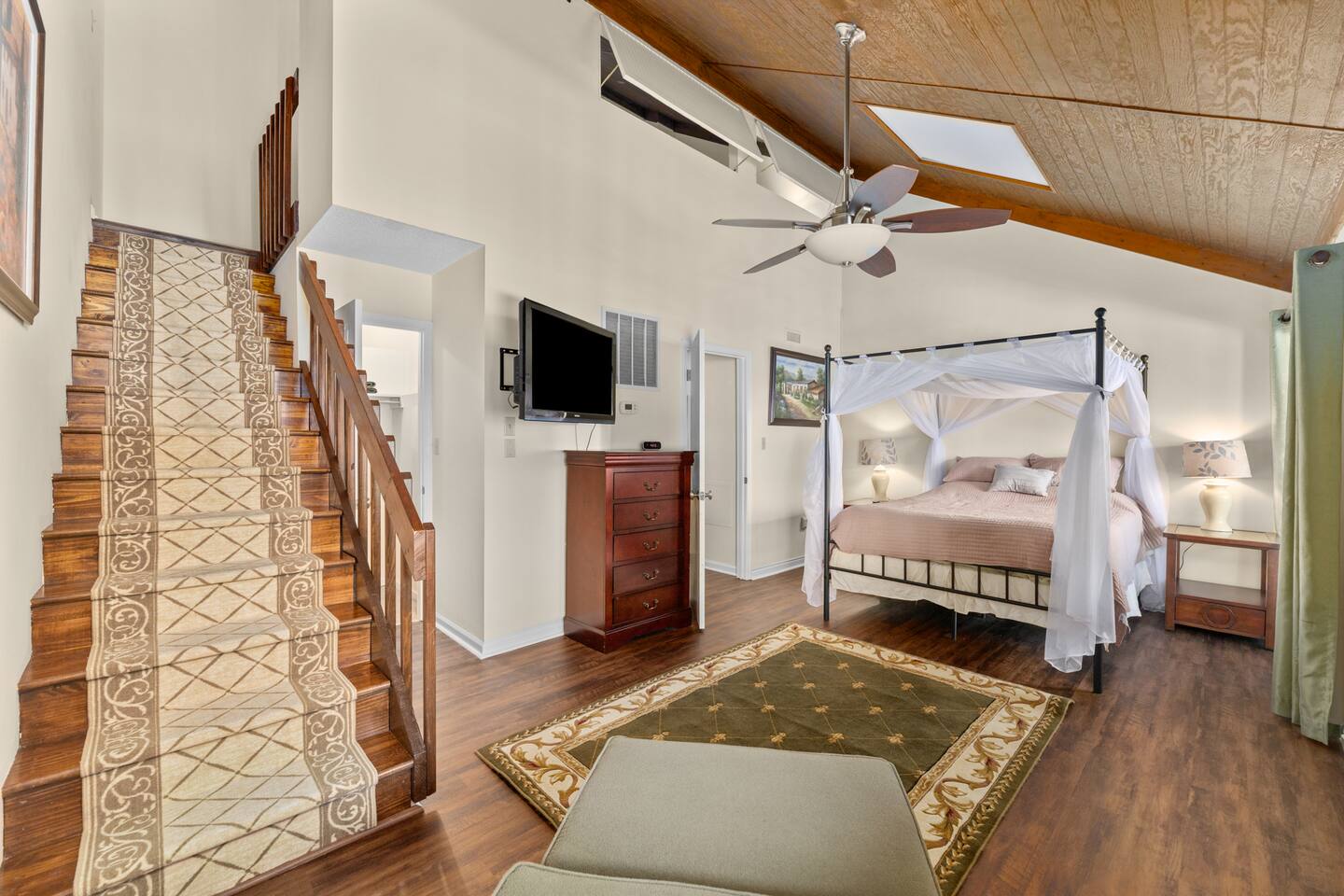 The bathrooms and bedrooms are upstairs. There is no TV in the loft bedroom. No daily housekeeping or replenishing of supplies. -We will not be held responsible for things out of our control, such as weather, your travel plans, illness, etc. If you do not purchase travel insurance, you will be subject to our cancelation policy should you decide to leave early, arrive last or cancel your stay.