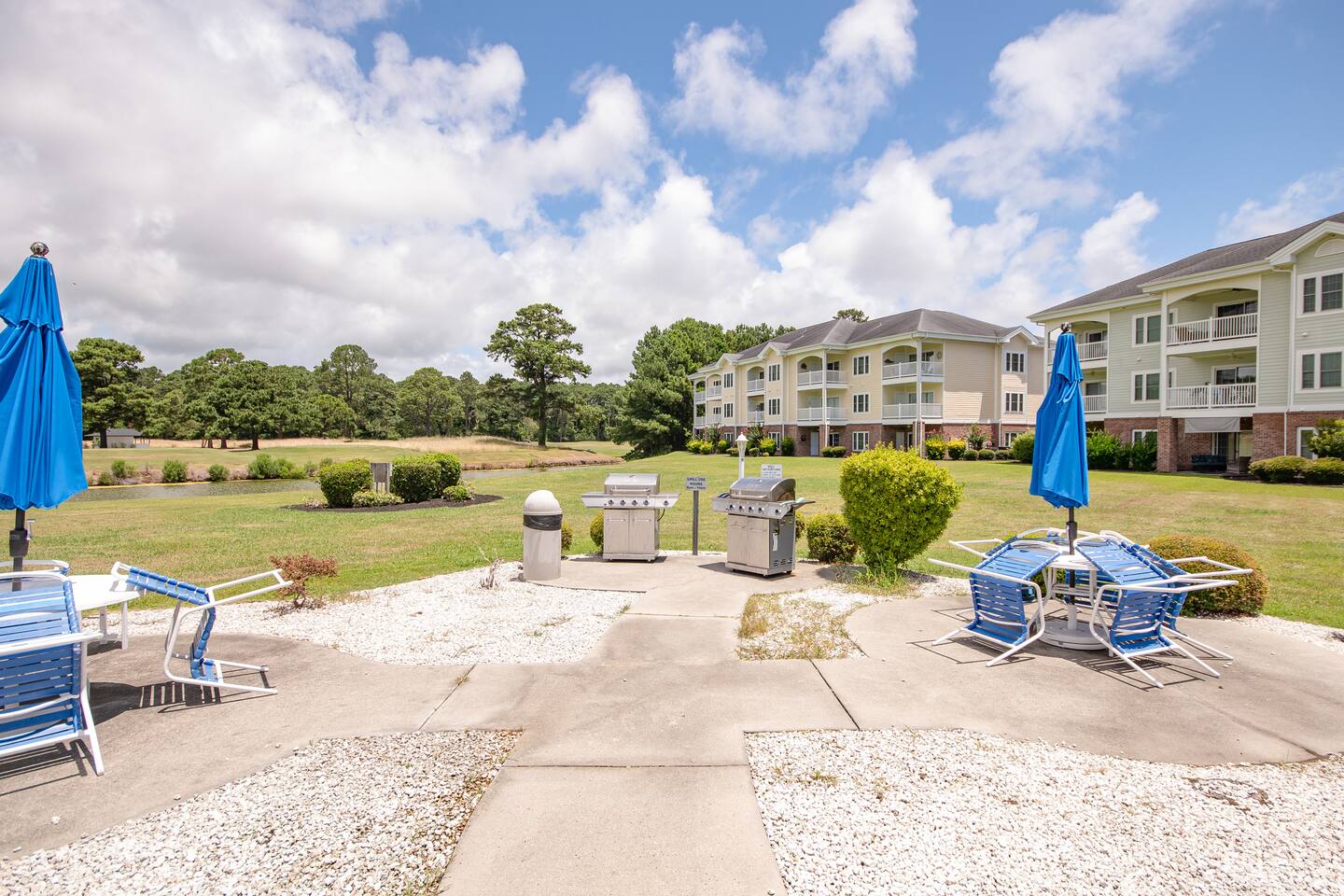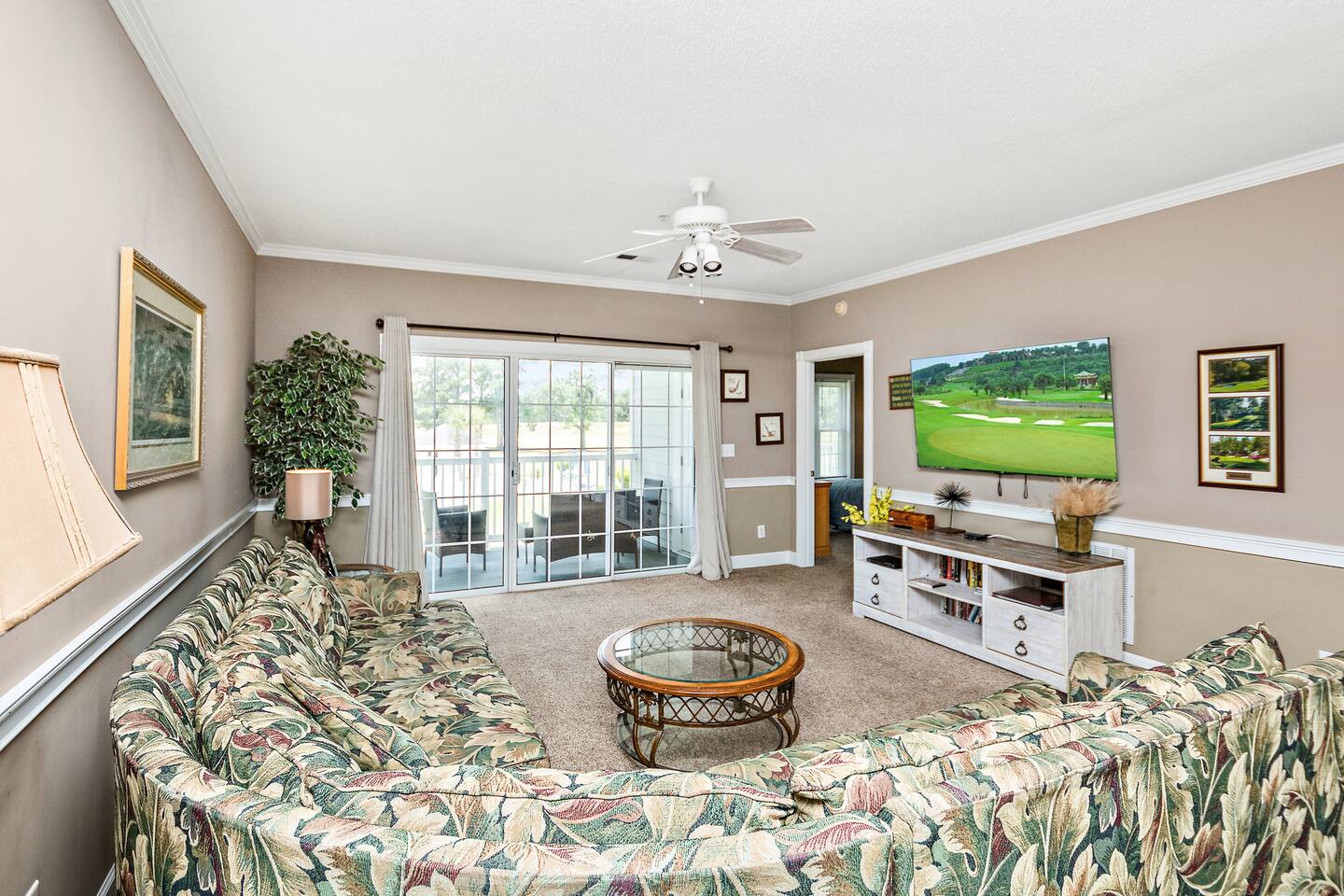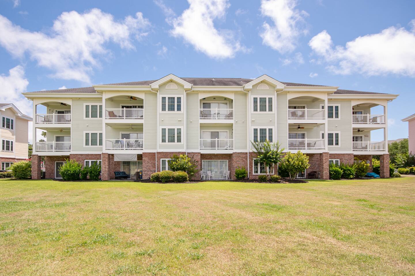 Centrally located, this golf villa features a large balcony w/ a water & pool view on the golf course. Spread out on the large, comfy sectional, cook some meals in the fully equipped kitchen, play in the pool, & create lasting memories with your family! This unit features a full sized washer & dryer for your convenience, a few beach chairs for your use, Roku TVs in the bedrooms & living room so you can stream your favorite subscriptions, free parking and more! Just a quick drive to the beach!