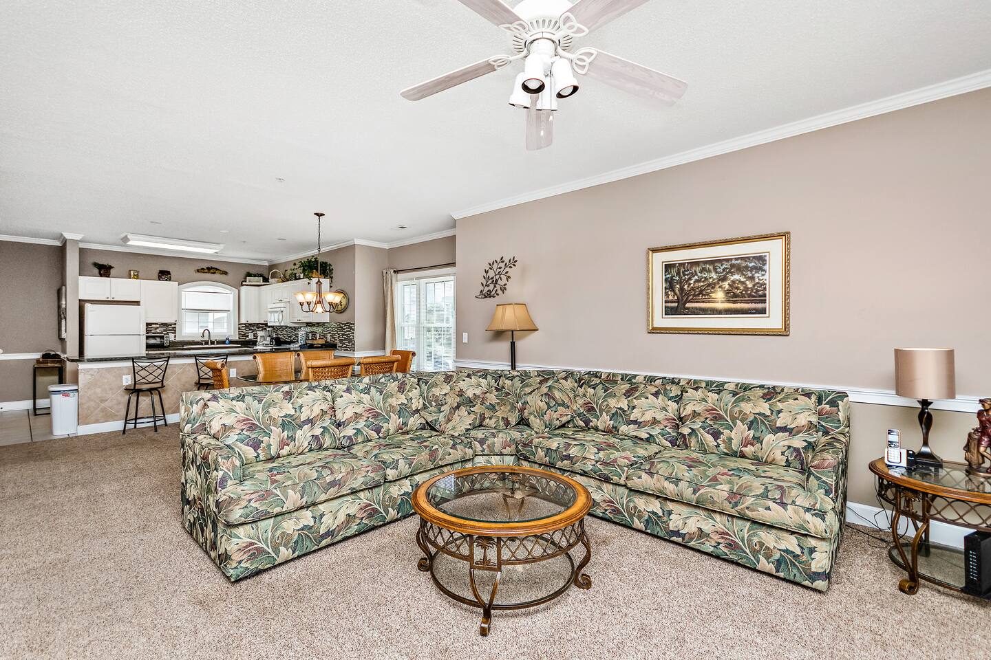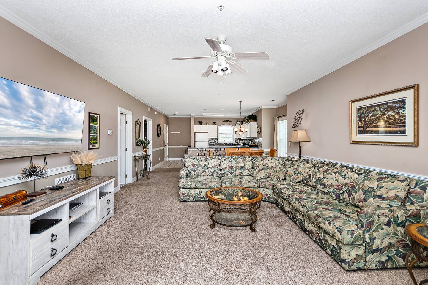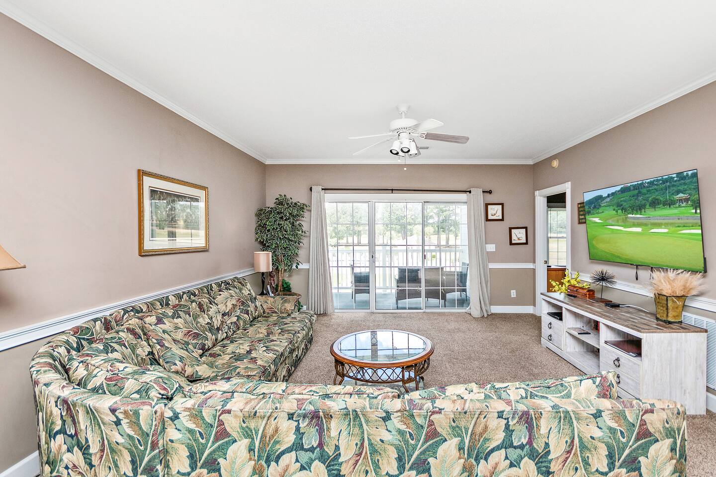 Centrally located, this golf villa features a large balcony w/ a water & pool view on the golf course. Spread out on the large, comfy sectional, cook some meals in the fully equipped kitchen, play in the pool, & create lasting memories with your family! This unit features a full sized washer & dryer for your convenience, a few beach chairs for your use, Roku TVs in the bedrooms & living room so you can stream your favorite subscriptions, free parking and more! Just a quick drive to the beach!