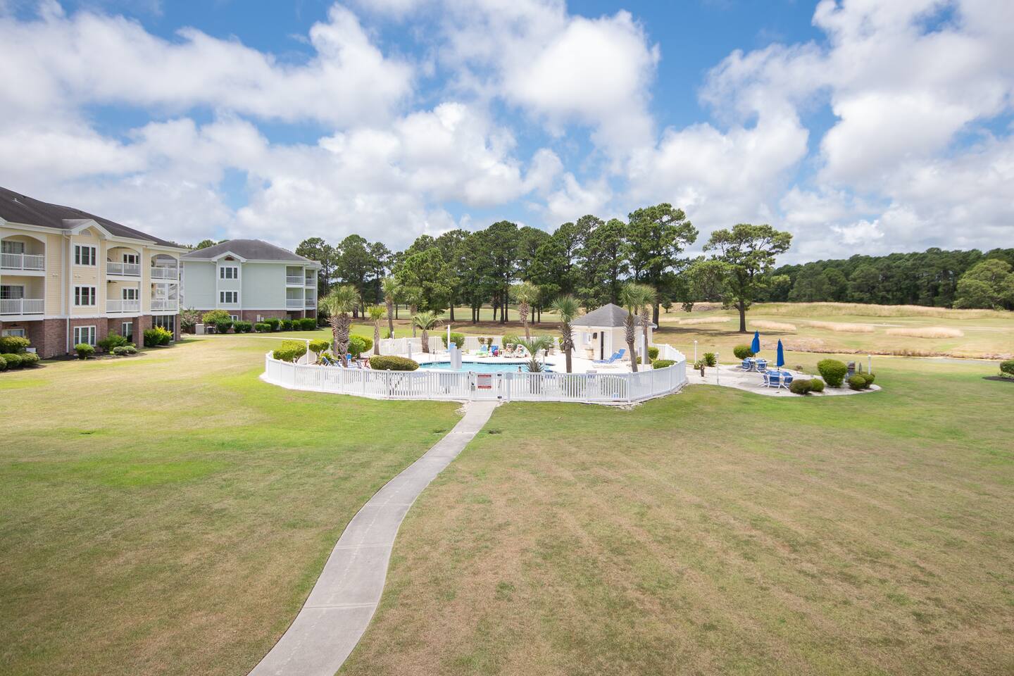 Pool view at Myrtlewood. Quick drive to the beach!