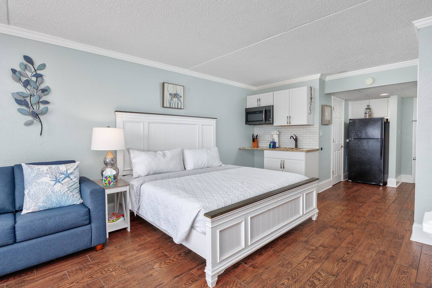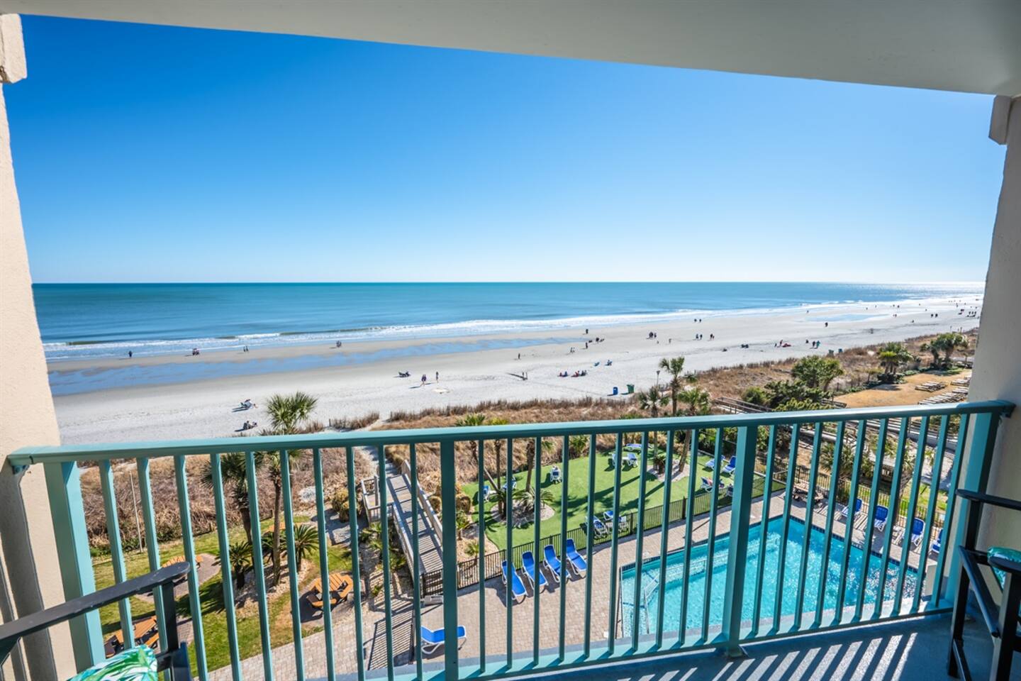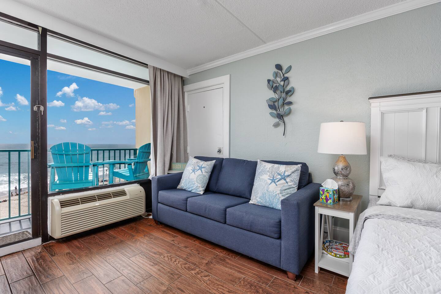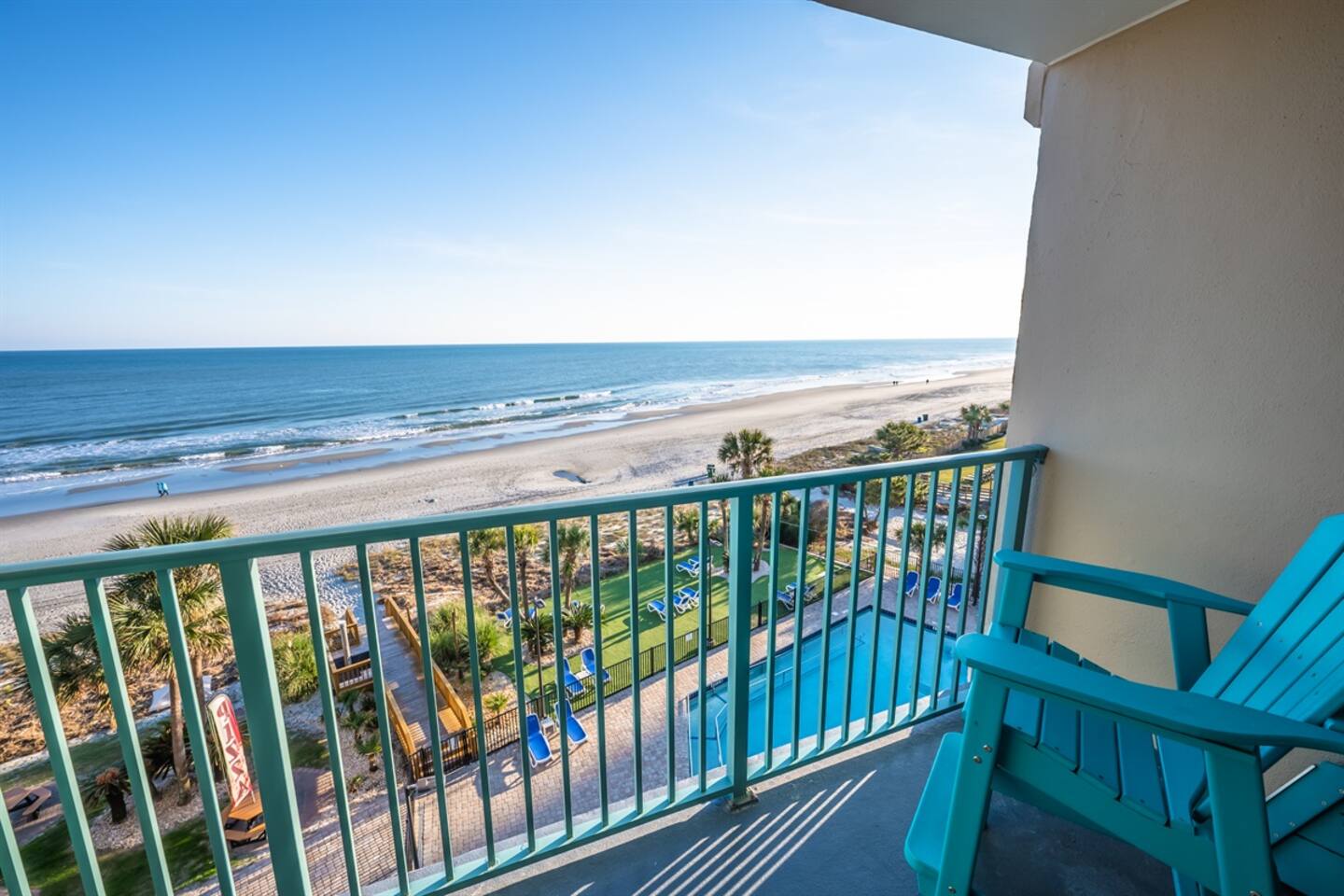 Located in Sand Dunes Resort on the 5th floor, you’ll enjoy sweeping views of the beach, ocean, and pool area from your private balcony. With a king-size bed and a queen-size sleeper sofa, there’s enough room for 4 people to sleep comfortably.